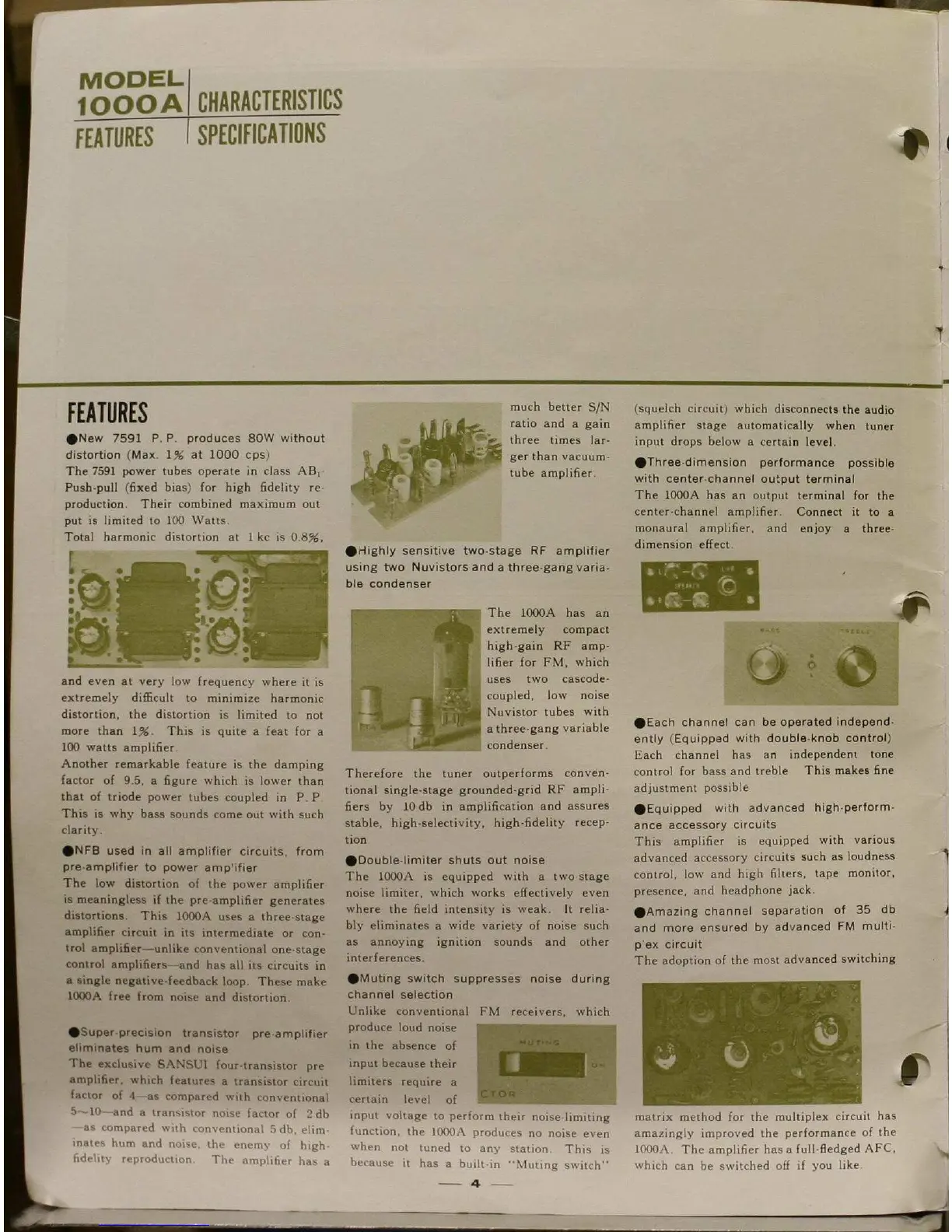Sansui 1000A - Main Amplifier Features; High Power Output; Sensitive FM Tuner