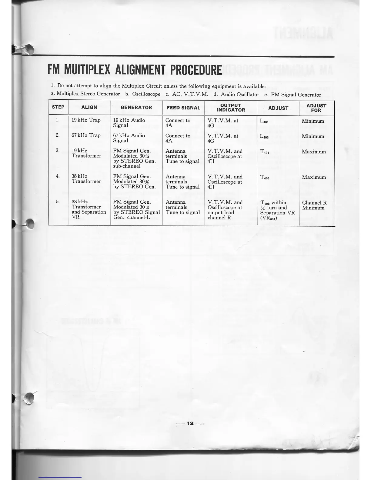 Sansui 1000X - FM Multiplex Alignment Procedure; AM Alignment Procedure