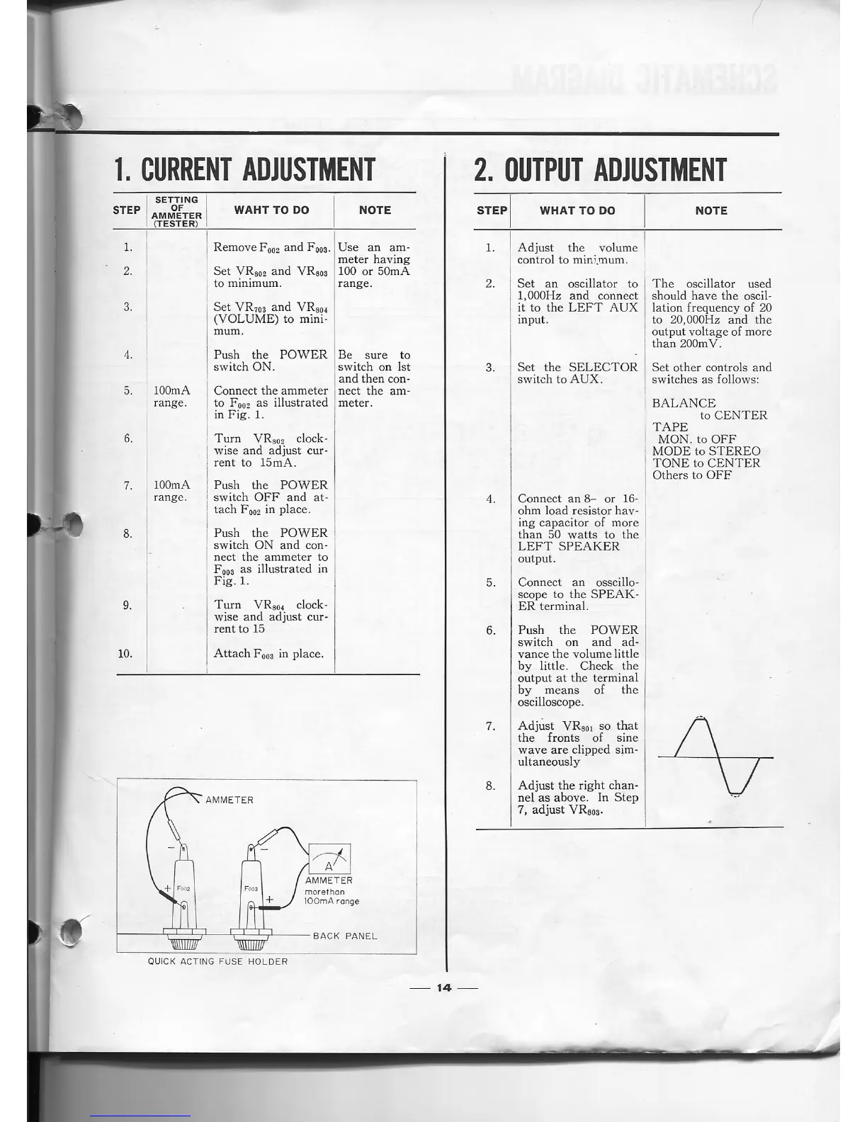 Sansui 1000X - Current Adjustment; Output Adjustment