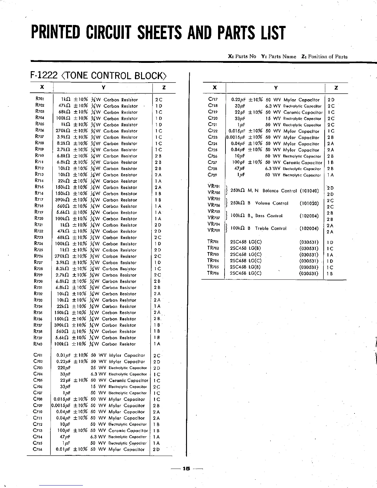 Sansui 2000A - Printed Circuit Sheets and Parts List; F-1222 Tone Control Block Parts List