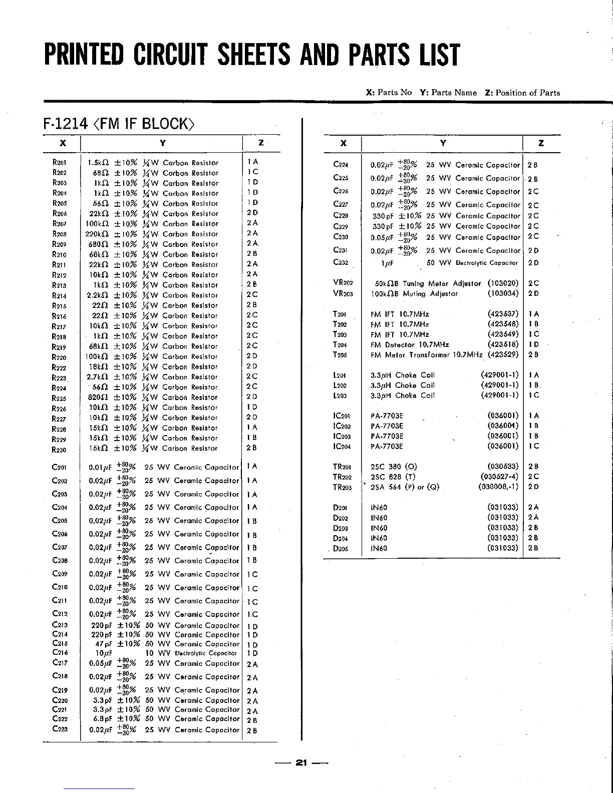 Sansui 2000A - F-1214 FM IF Block Parts List