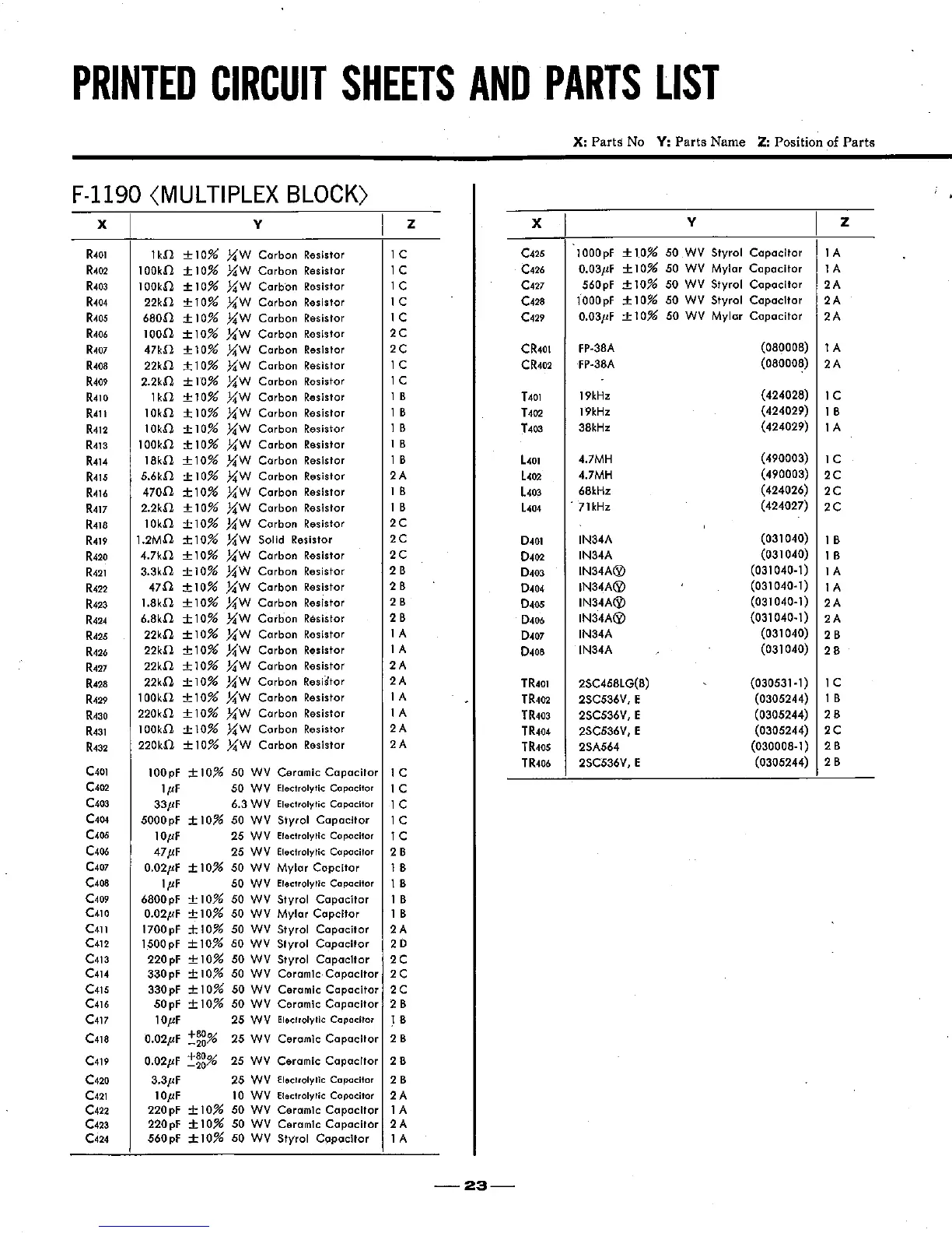 Sansui 2000A - F-1190 Multiplex Block Parts List