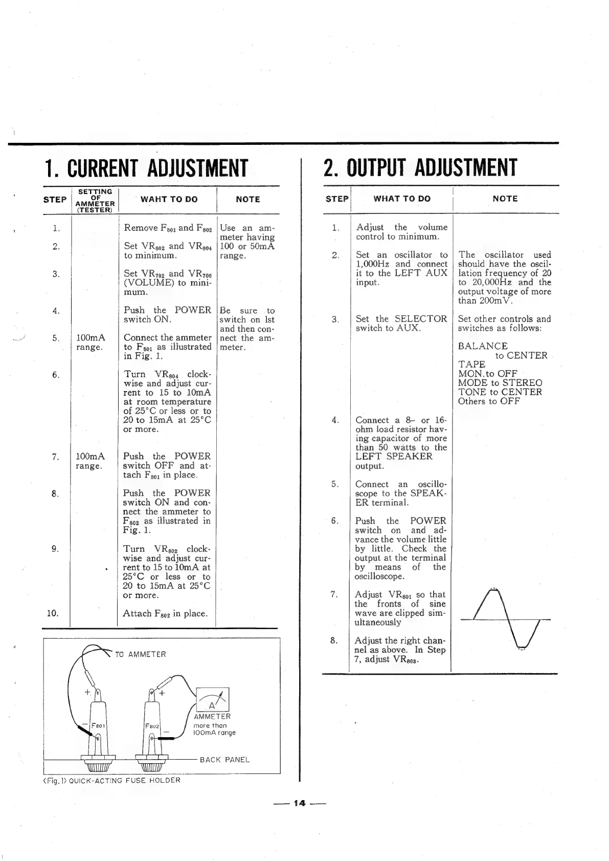 Sansui 2000X - Current Adjustment; Output Adjustment