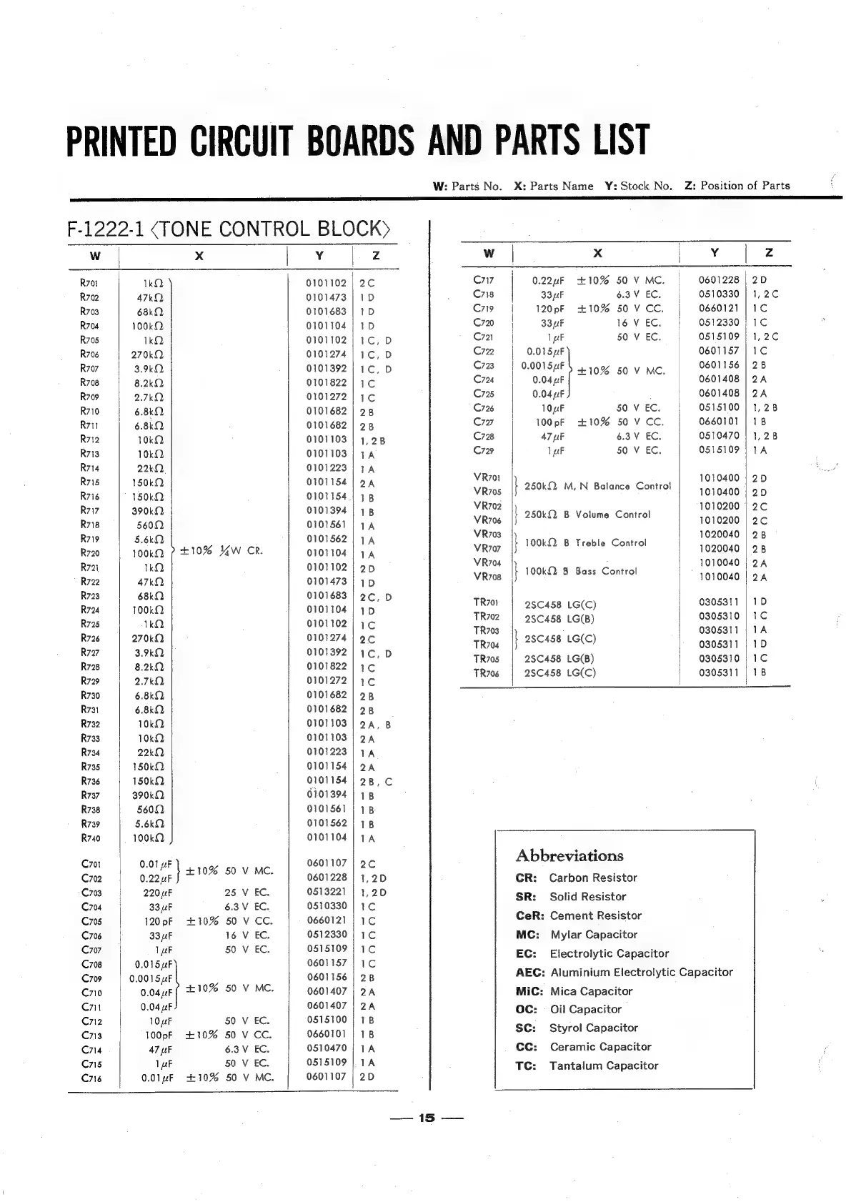 Sansui 2000X - Printed Circuit Boards and Parts List; Tone Control Block (F-1222-1)
