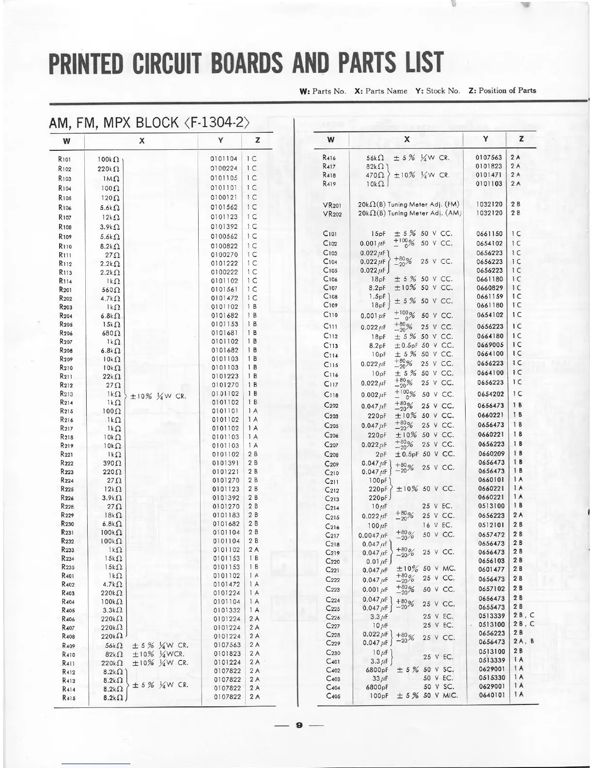 Sansui 210 - AM, FM, MPX Block (F-1304-2) Parts List Continuation