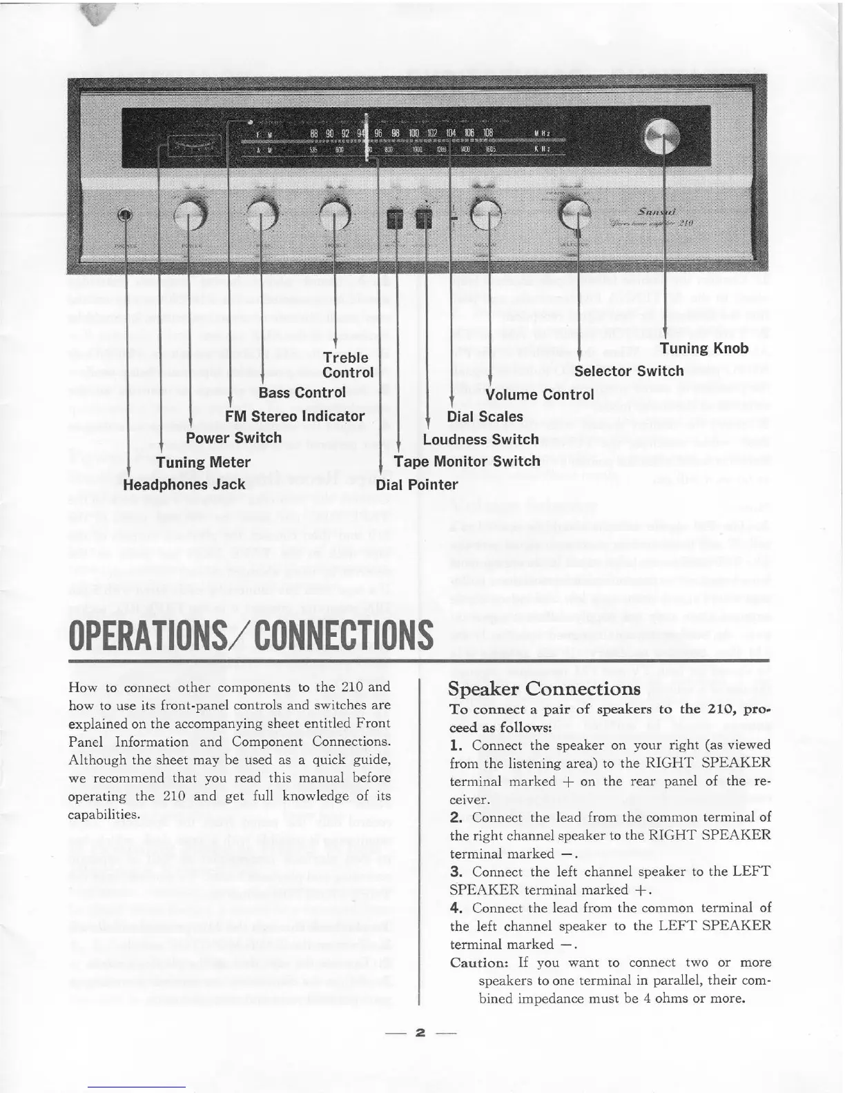 Sansui 210 - OPERATIONS AND CONNECTIONS; Speaker Connections