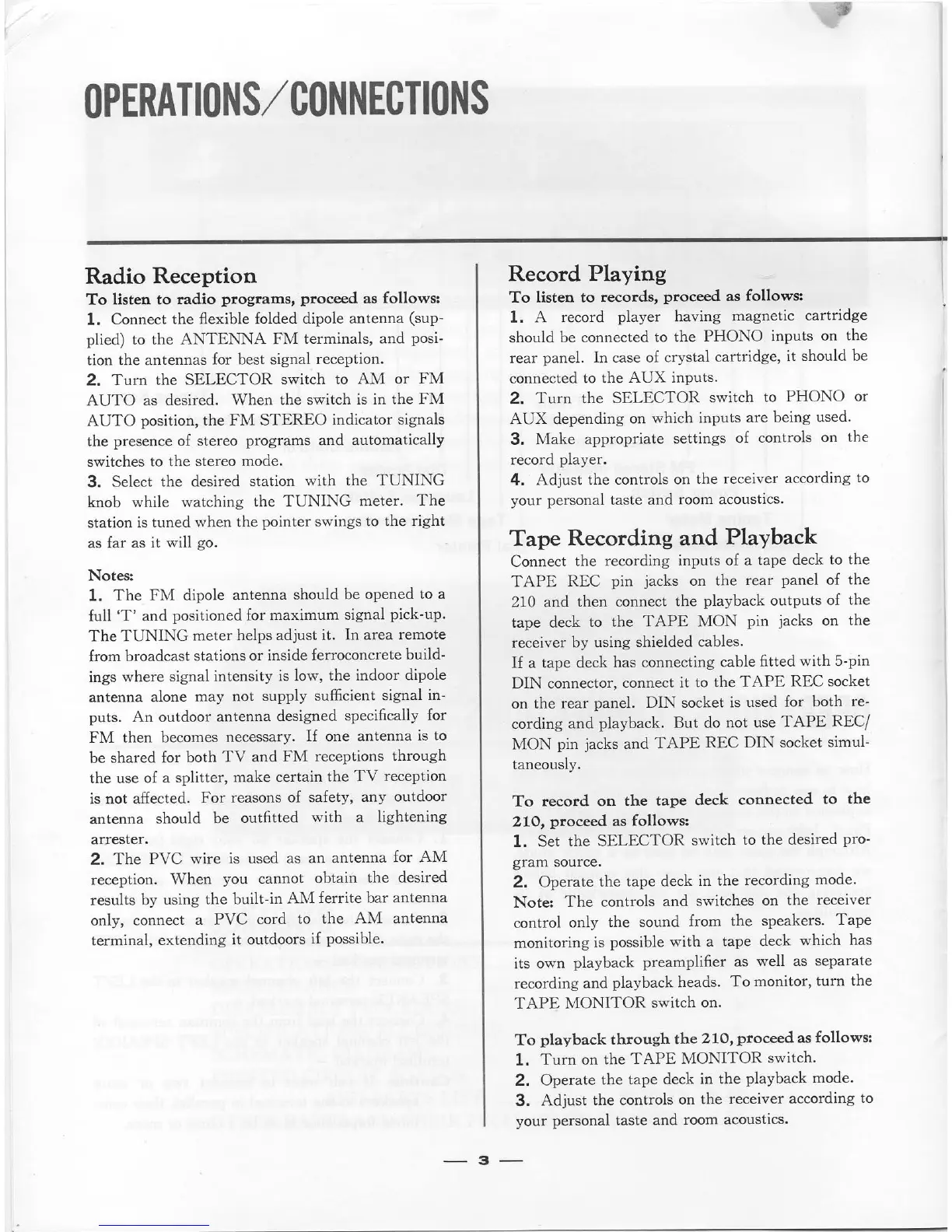 Sansui 210 - Radio Reception