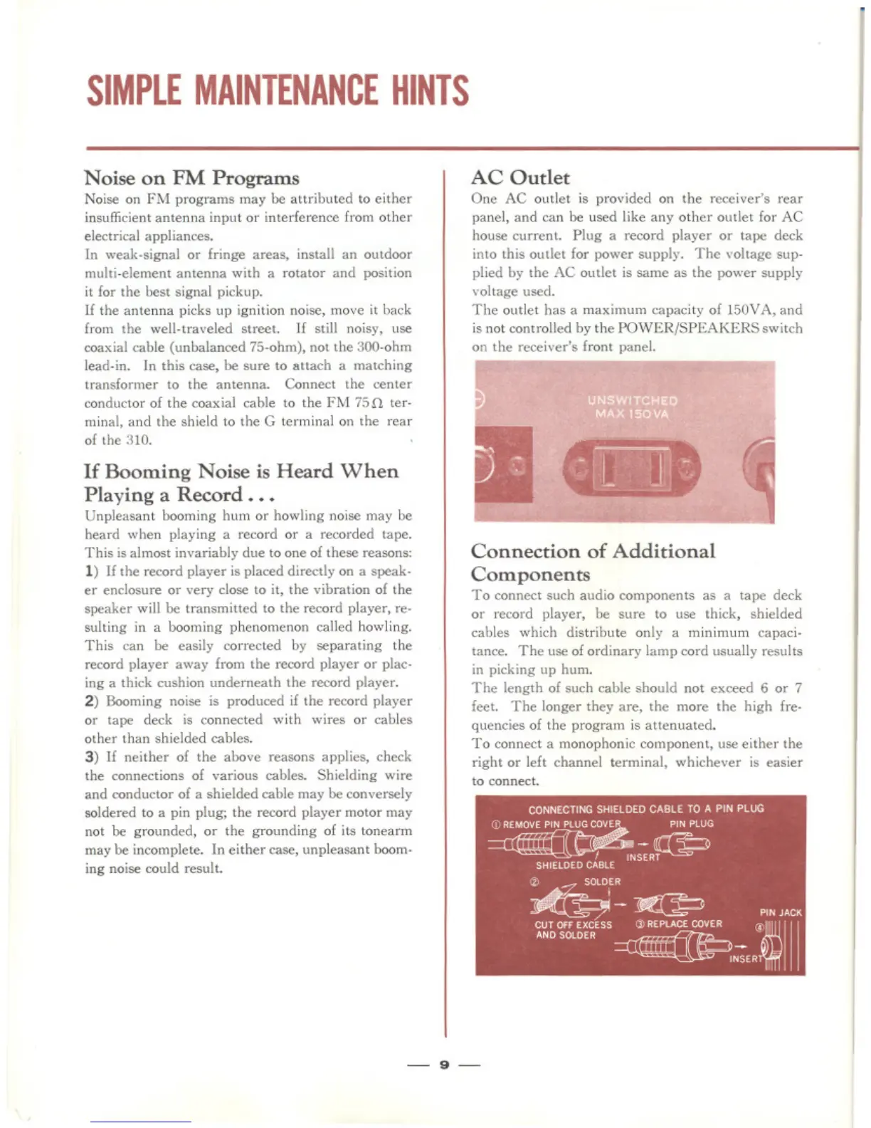 Sansui 310 - Simple Maintenance Hints; FM Reception Noise Troubleshooting; Record Playback Noise Issues