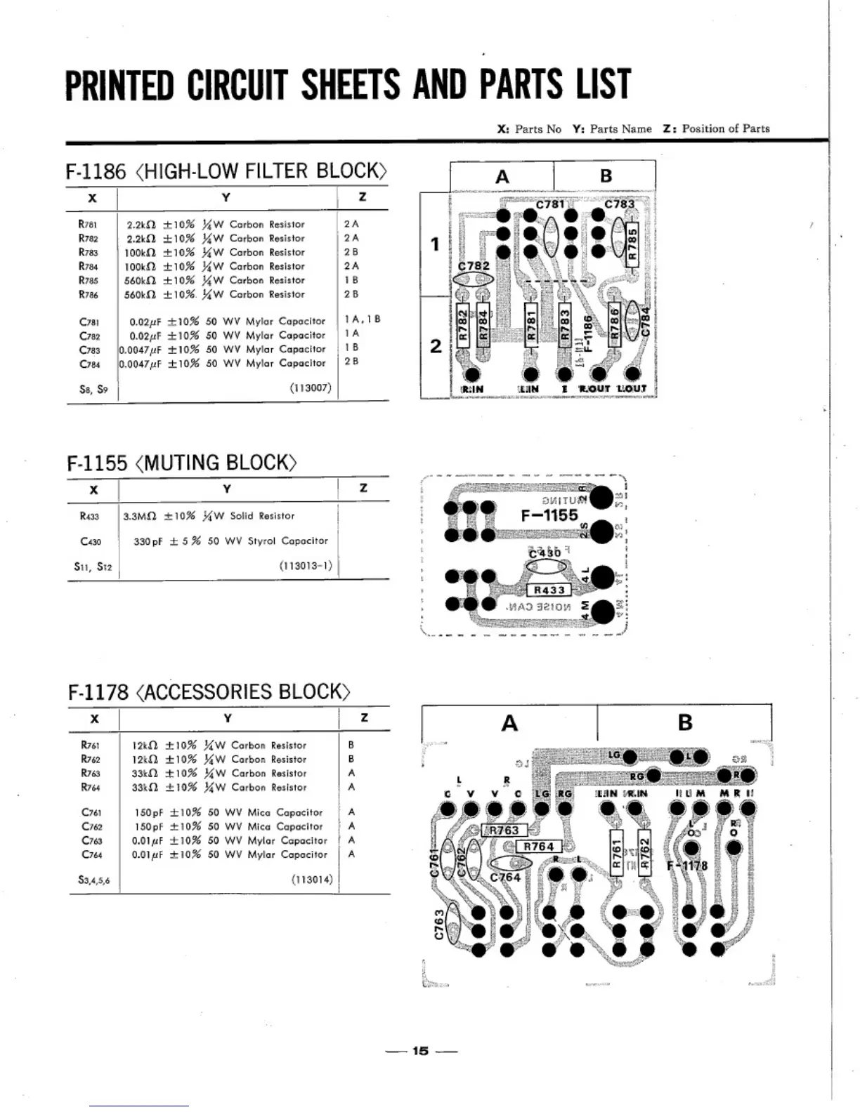 Sansui 4000 - F-1186 <HIGH-LOW FILTER BLOCK>; F-1155 <MUTING BLOCK>; F-1178 <ACCESSORIES BLOCK>