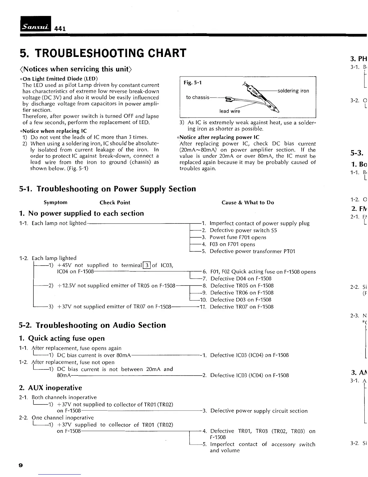 Sansui 441 - Power Supply Troubleshooting; Audio Section Troubleshooting