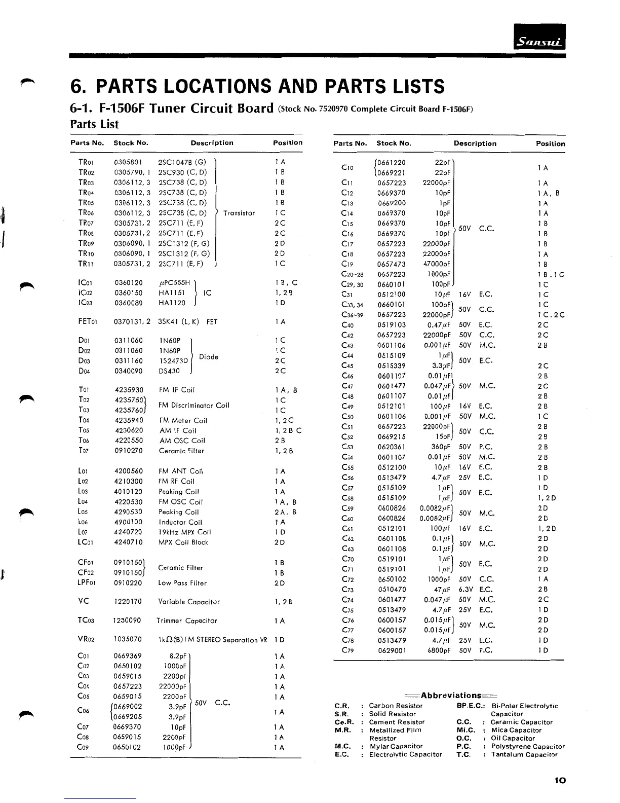 Sansui 441 - Sansui 441 Parts Lists and Locations; F-1506 F Tuner Circuit Board Parts List