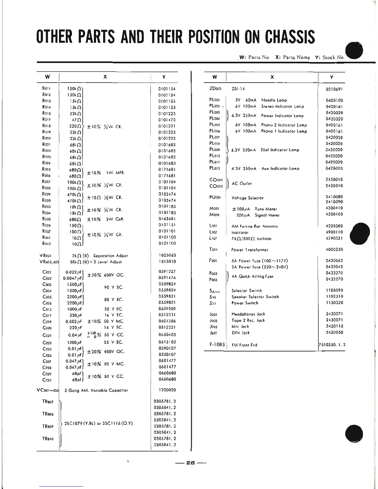 Sansui 5000X - Other Parts and Their Position on Chassis