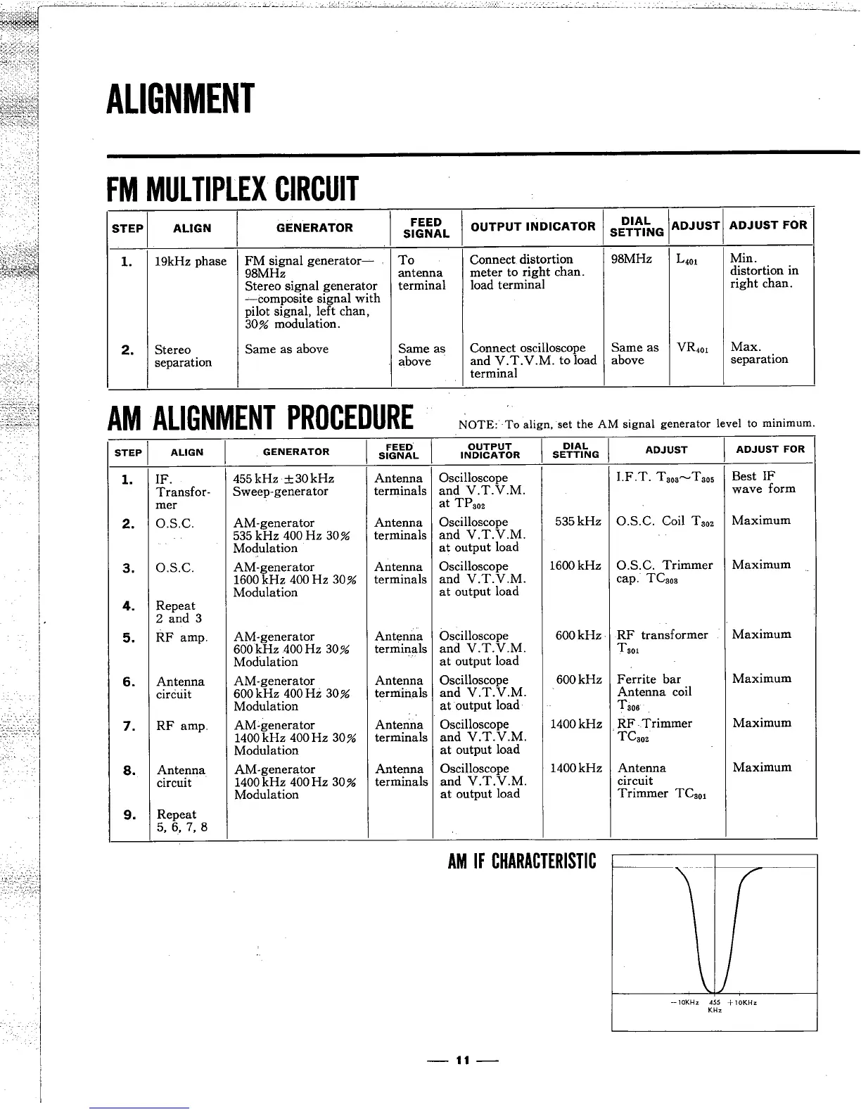 Sansui 7000 - FM Multiplex Circuit; AM Alignment Procedure; AM IF Characteristic
