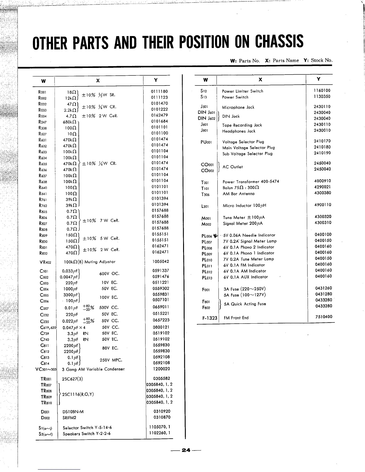 Sansui 7000 - Other Parts and Their Position on Chassis