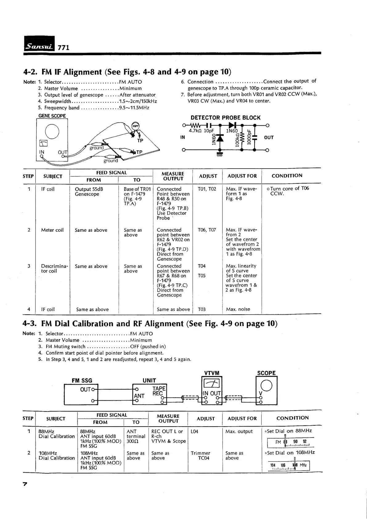 Sansui 771 - 4-2. FM IF Alignment; 4-3. FM Dial Calibration and RF Alignment