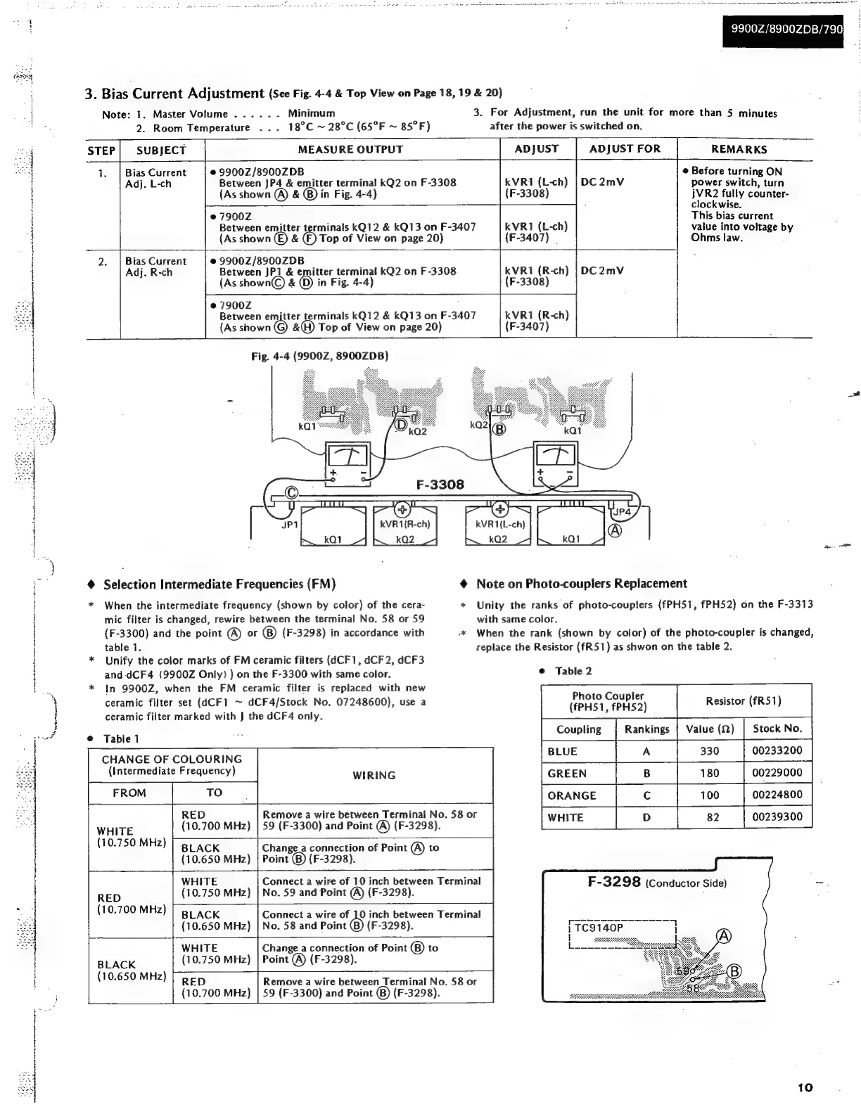Sansui 7900Z - Bias Current Adjustment; FM Intermediate Frequency Selection