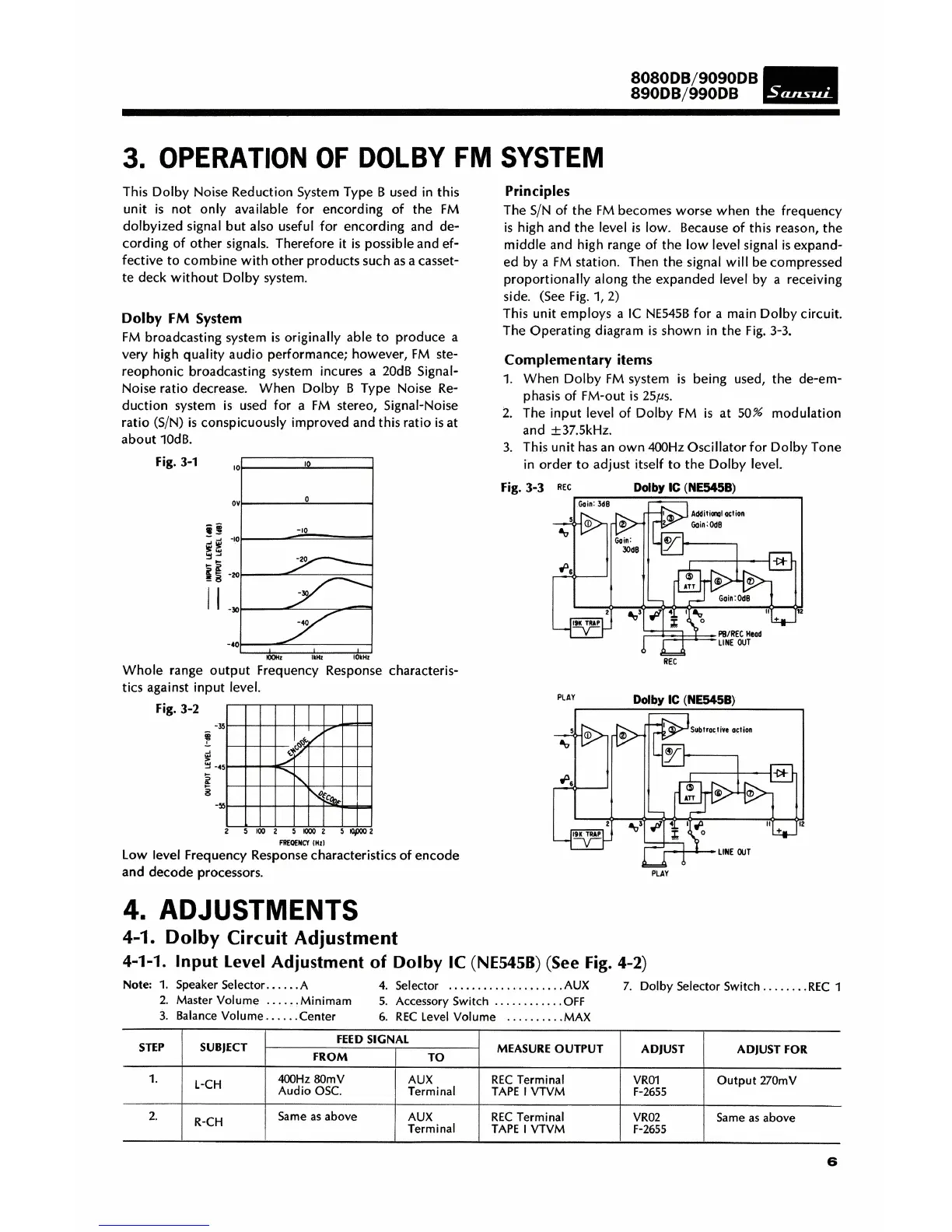 Sansui 8080DB - 3. OPERATION OF DOLBY FM SYSTEM; Principles; Complementary Items; 4. ADJUSTMENTS