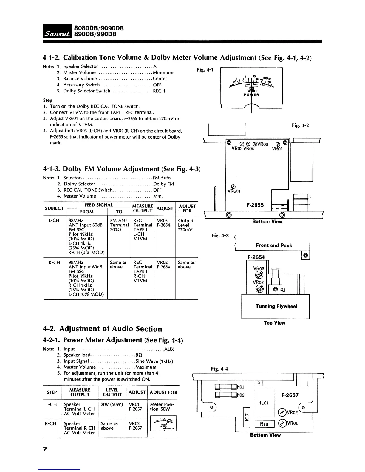 Sansui 8080DB - 4-1-1. Input Level Adjustment of Dolby IC (NE545 B); 4-1-2. Calibration Tone Volume & Dolby Meter Volume Adjustment; 4-1-3. Dolby FM Volume Adjustment; 4-2. Adjustment of Audio Section