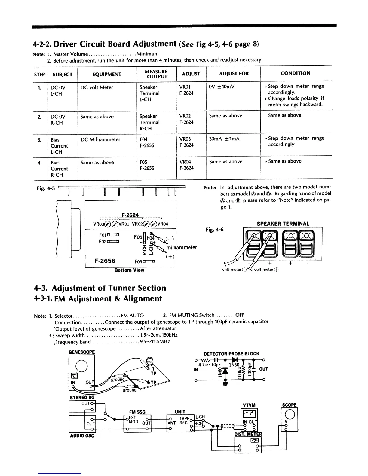 Sansui 8080DB - 4-2-1. Power Meter Adjustment; 4-2-2. Driver Circuit Board Adjustment; 4-3. Adjustment of Tunner Section