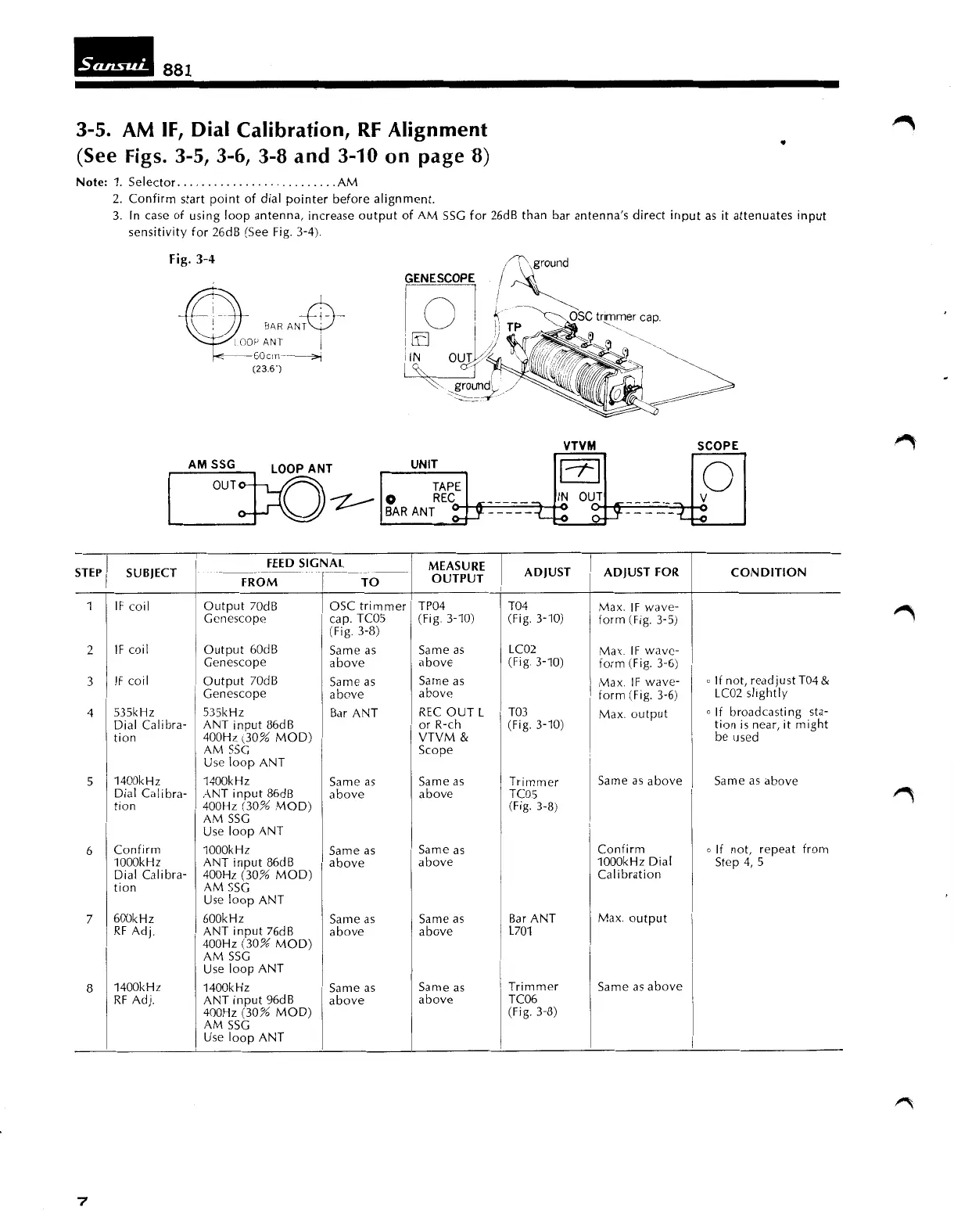 Sansui 881 - AM IF and RF Alignment