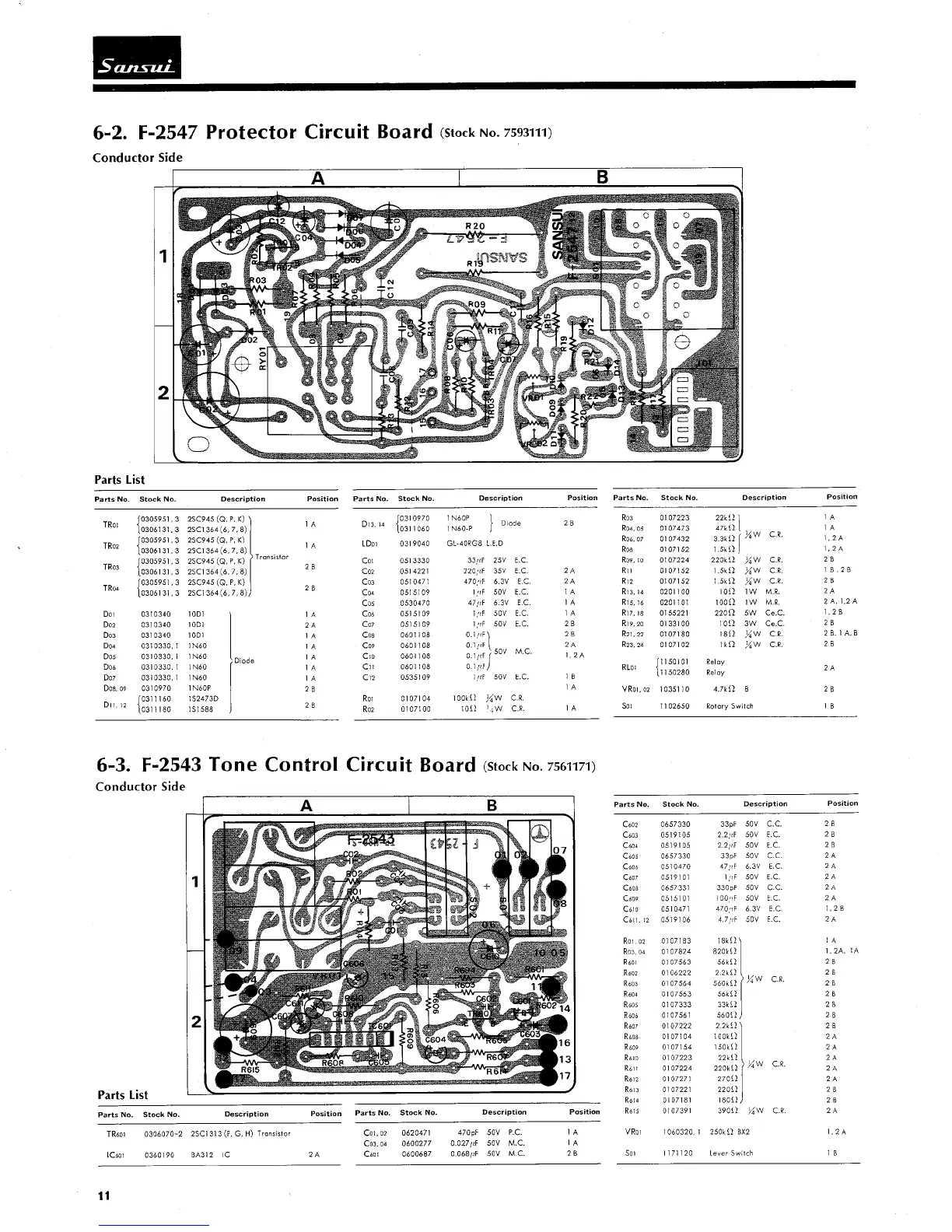 Sansui 890 - 6-2. F-2547 Protector Circuit Board; 6-3. F-2543 Tone Control Circuit Board