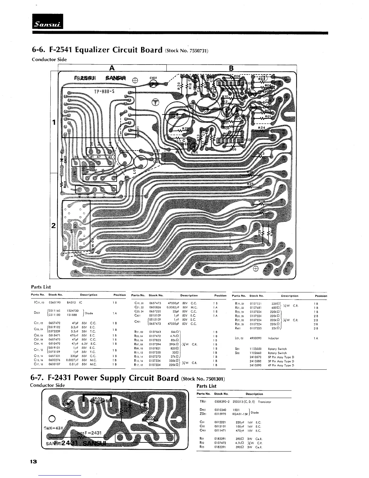 Sansui 890 - 6-6. F-2541 Equalizer Circuit Board; 6-7. F-2431 Power Supply Circuit Board