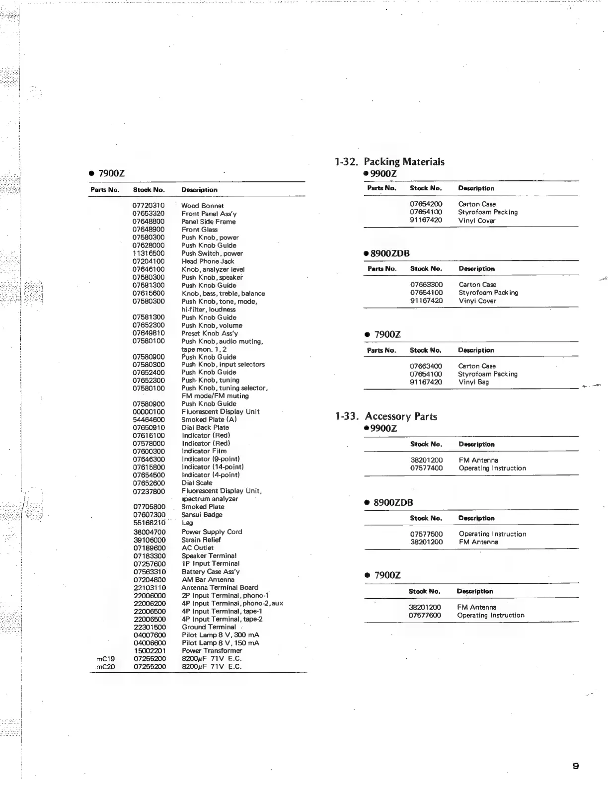Sansui 8900ZDB - Packing and Accessory Parts