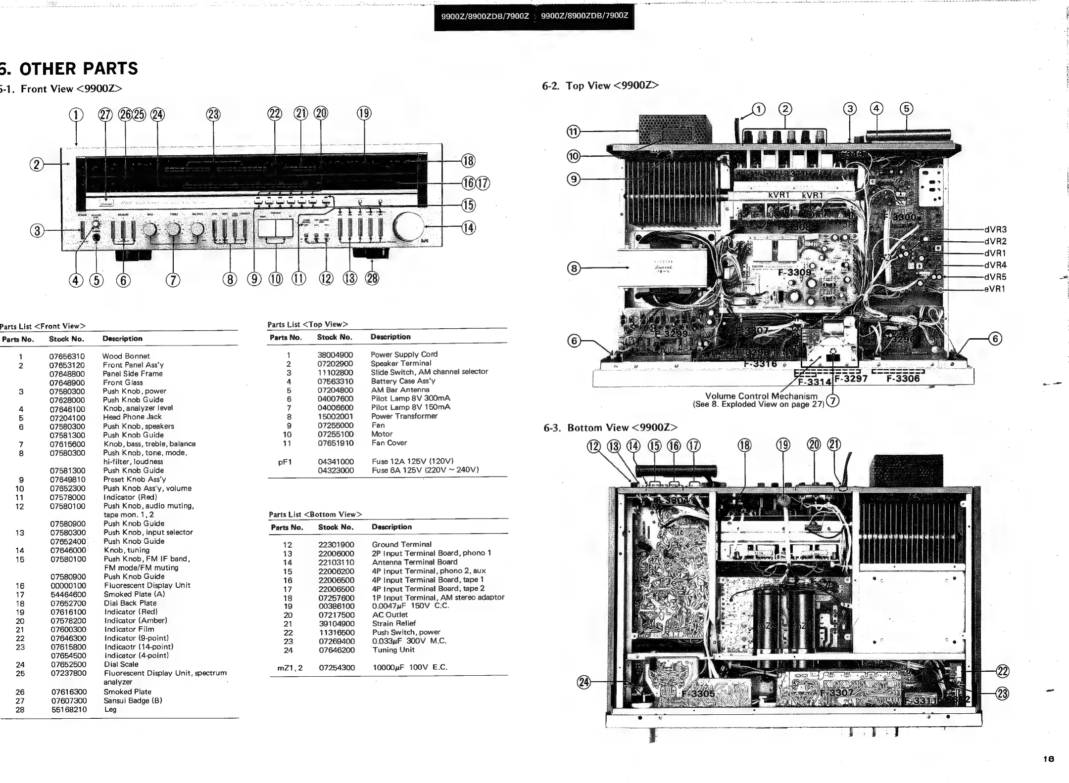 Sansui 8900ZDB - Other Parts; Front, Top, and Bottom Views (9900 Z)