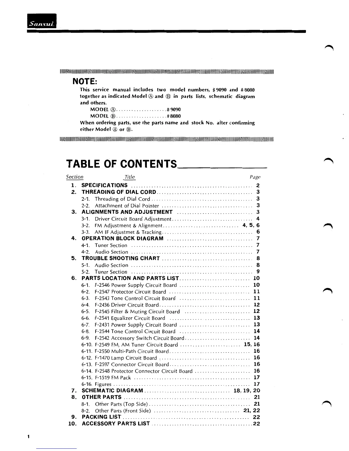 Sansui 9090 - Table of Contents
