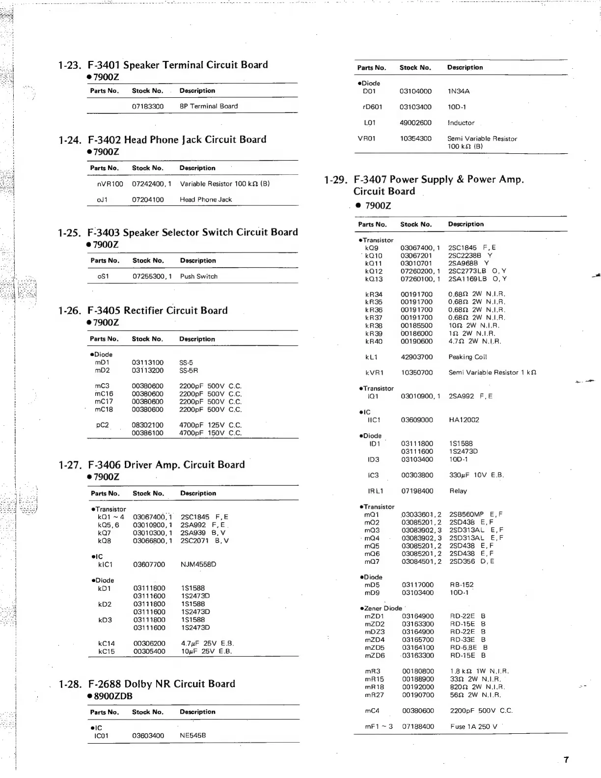 Sansui 9900Z - F-3401 Speaker Terminal Circuit Board; F-3402 Head Phone Jack Circuit Board; F-3403 Speaker Selector Switch Circuit Board; F-3405 Rectifier Circuit Board