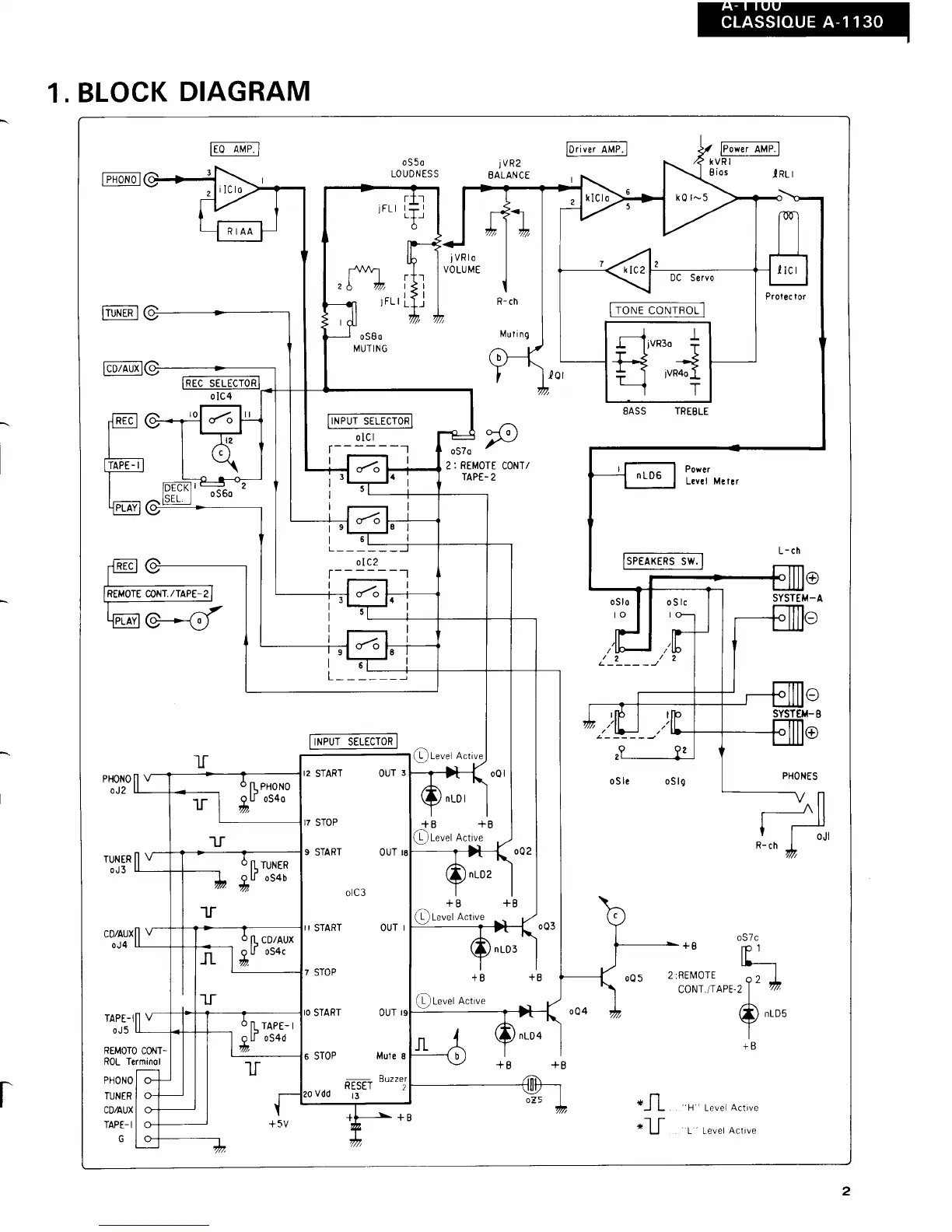 Sansui A-1100 - Block Diagram; Signal Flow Overview; Input Selector Logic; Power Amplifier and DC Servo