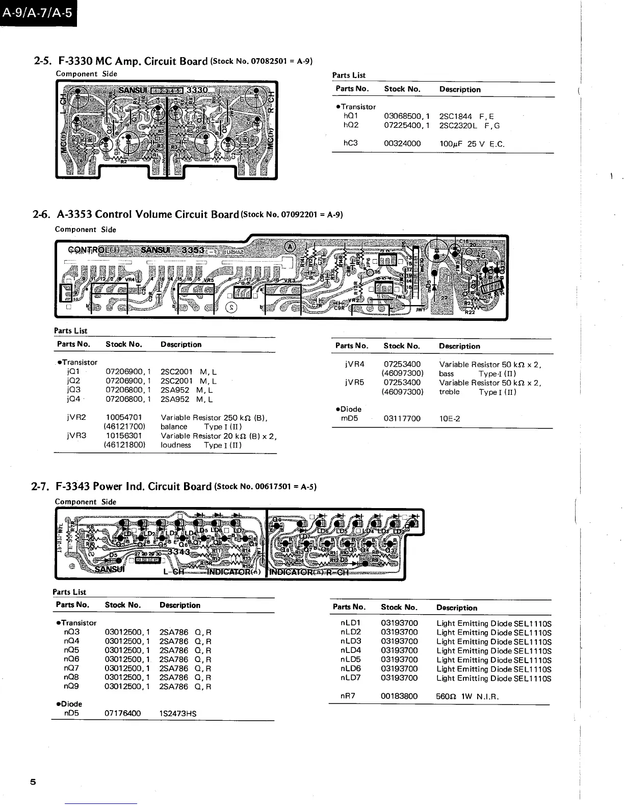 Sansui A-5 - 2-5. F-3330 MC Amp. Circuit Board