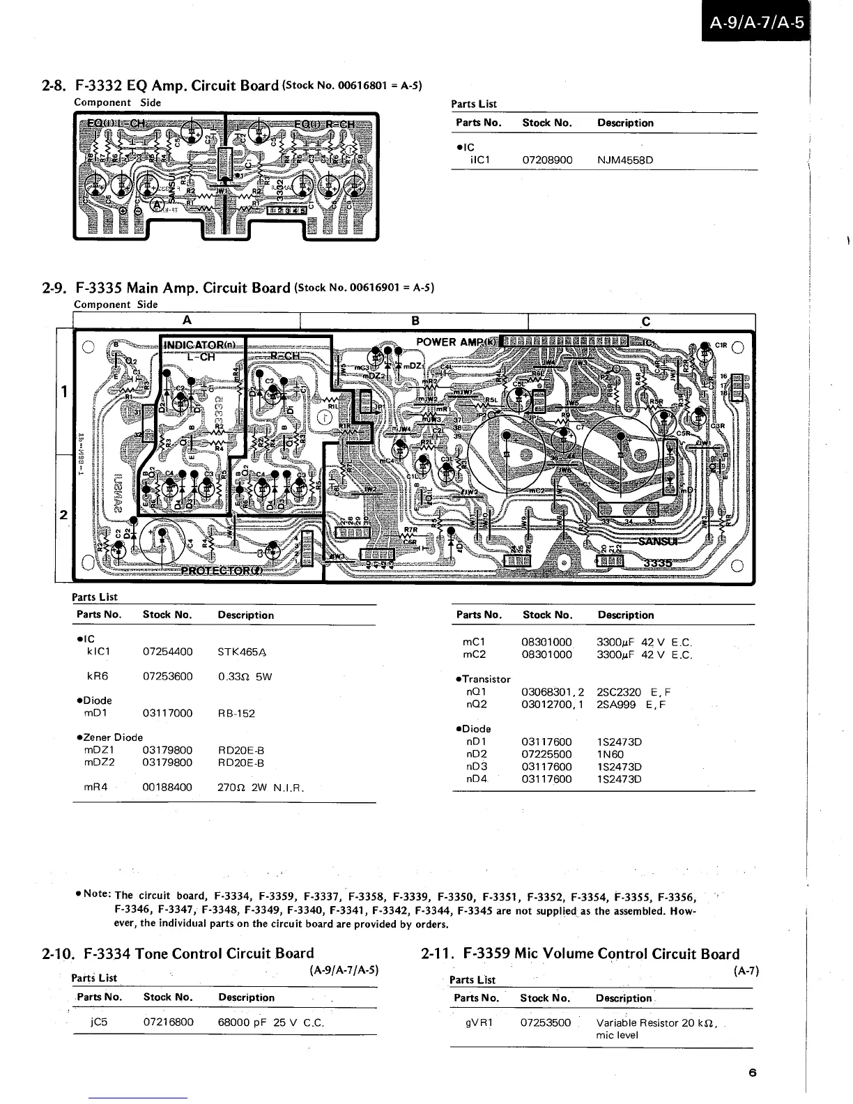 Sansui A-7 - Signal & Power Circuit Board Parts
