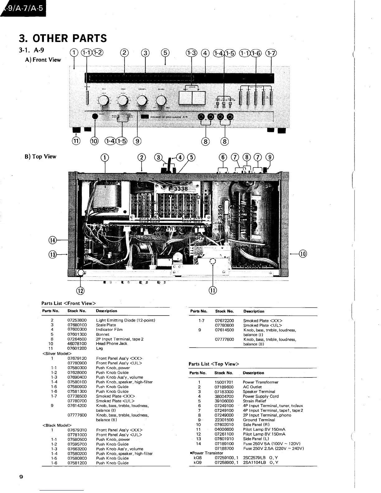 Sansui A-9 - External and Mechanical Parts; A-9 External Parts
