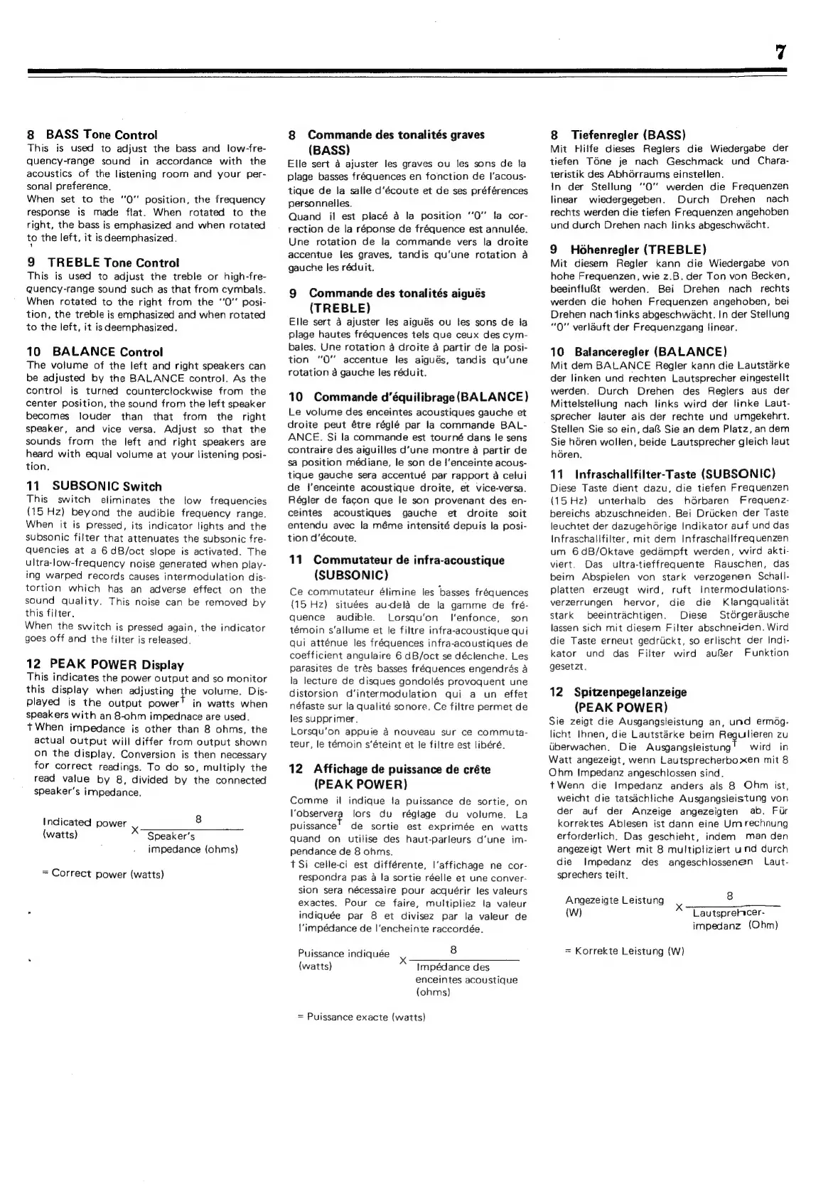 Sansui A-909 - Sound Adjustment Controls; Bass Tone Control Operation; Treble Tone Control Operation; Balance Adjustment Operation