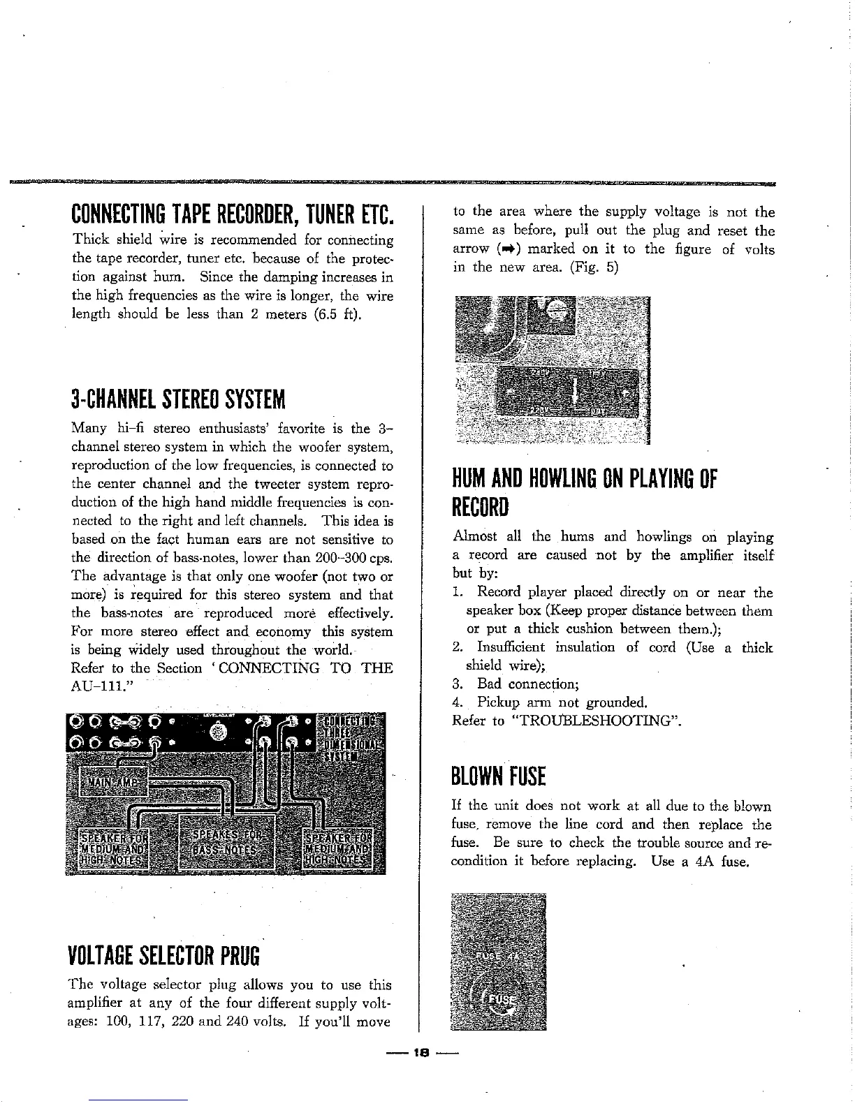 Sansui AU-111 - Troubleshooting Hum and Howling; Blown Fuse and Voltage Selector