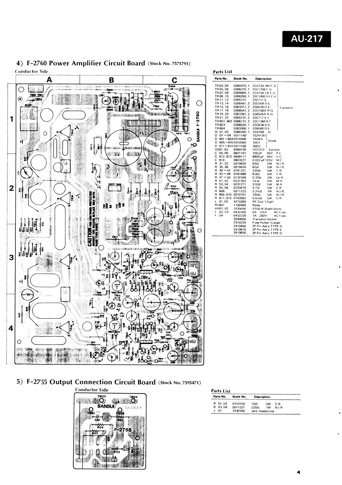 Sansui AU-217 - F-2760 Power Amplifier Circuit Board; F-2755 Output Connection Circuit Board