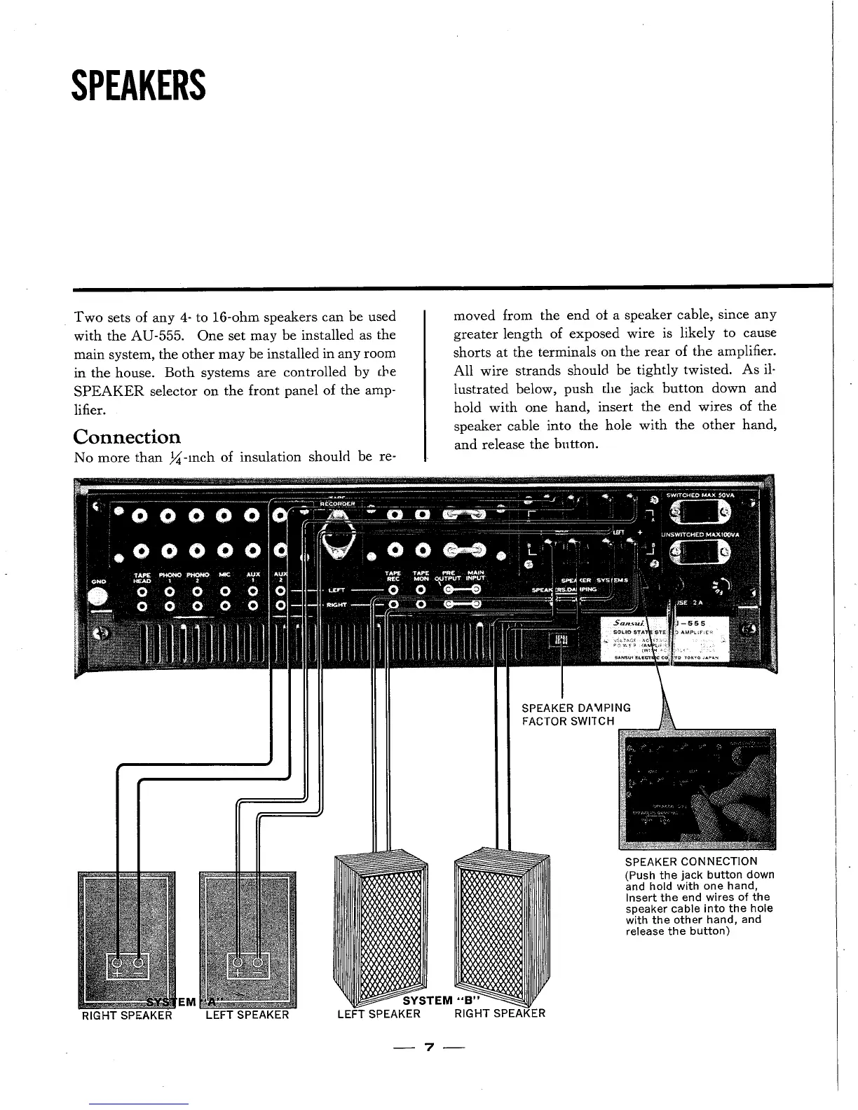 Sansui AU-555 - Speaker System Setup; Speaker Connection