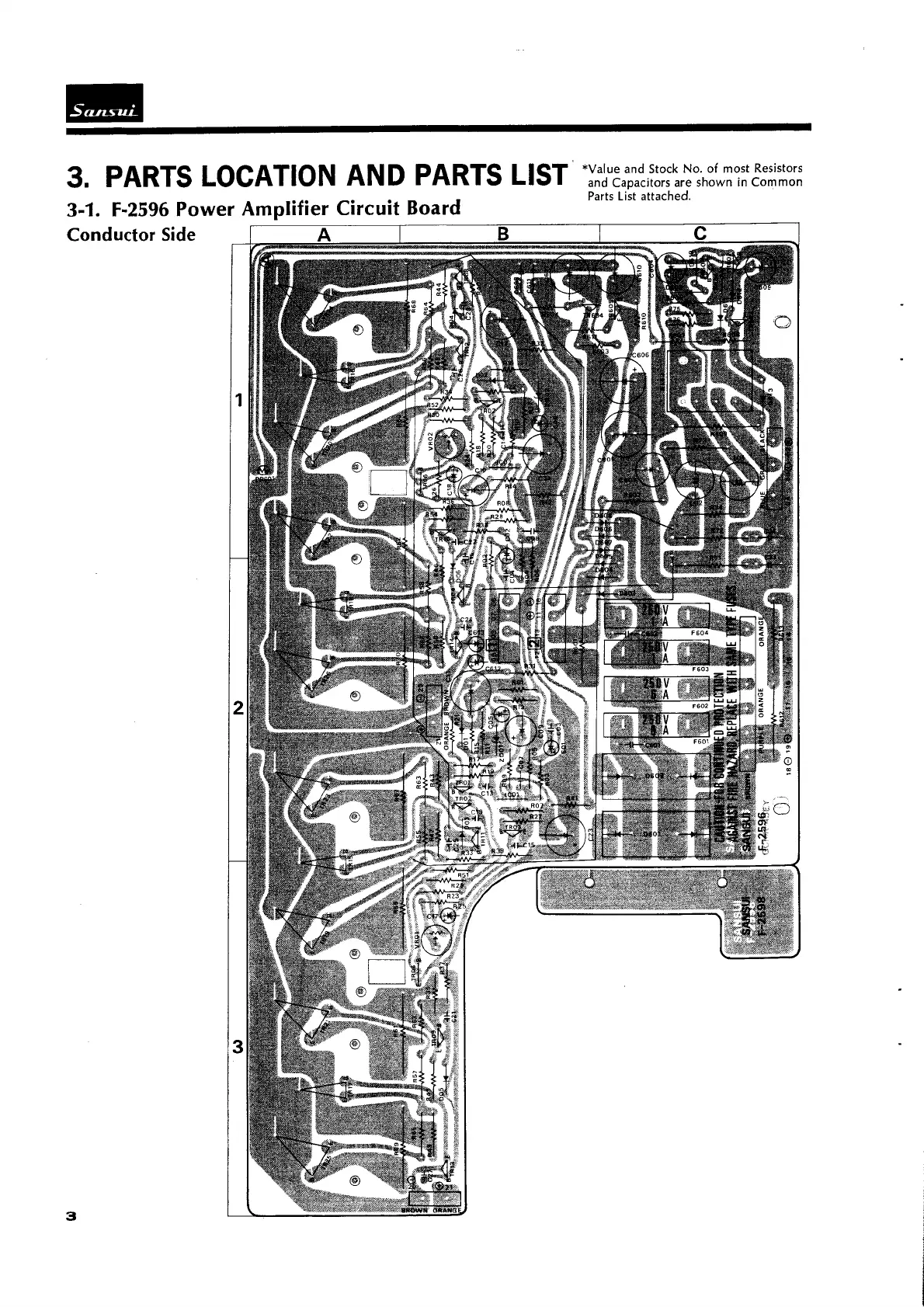 Sansui AU-5900 - 3. Parts Location and Parts List; 3-1. F-2596 Power Amplifier Circuit Board