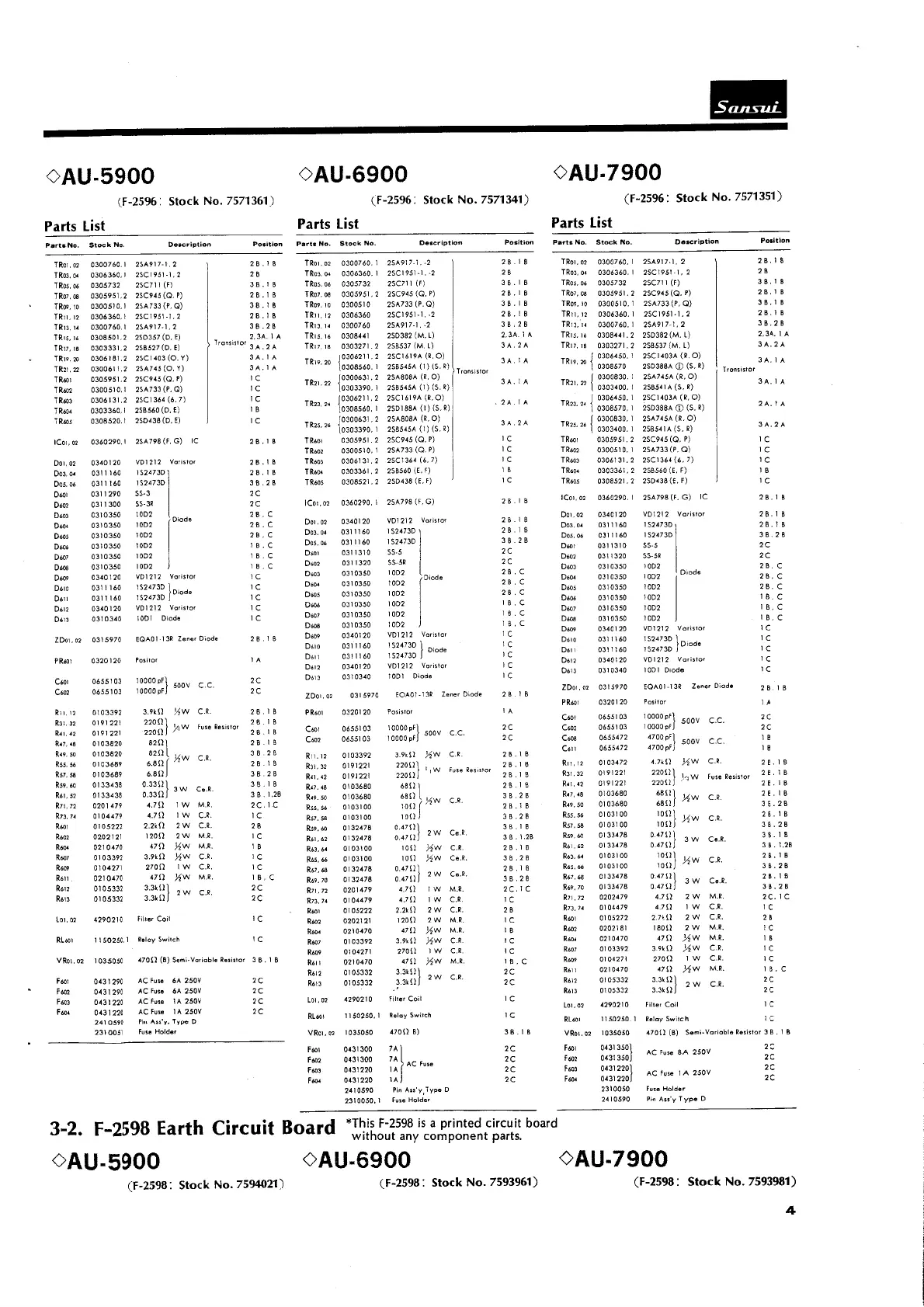 Sansui AU-5900 - 3-2. F-2598 Earth Circuit Board