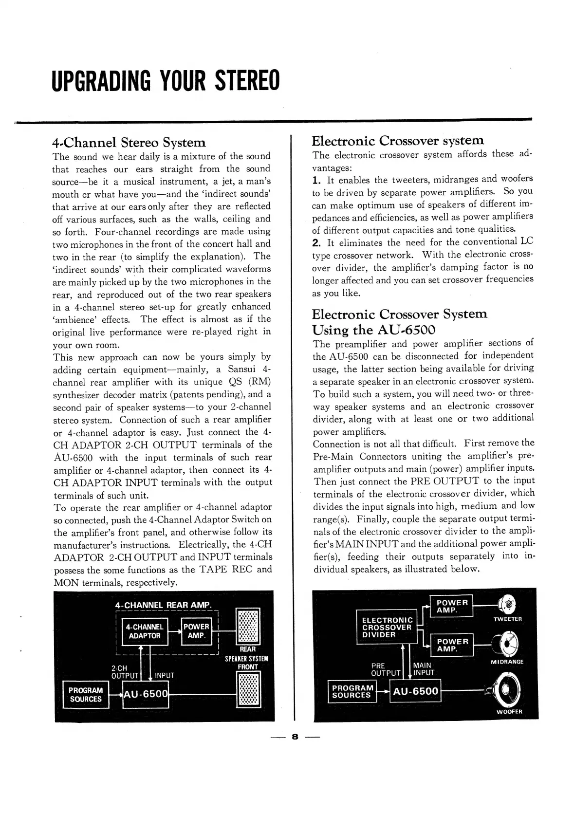 Sansui AU-6500 - STEREO UPGRADES; 4-Channel System Integration; Electronic Crossover Setup