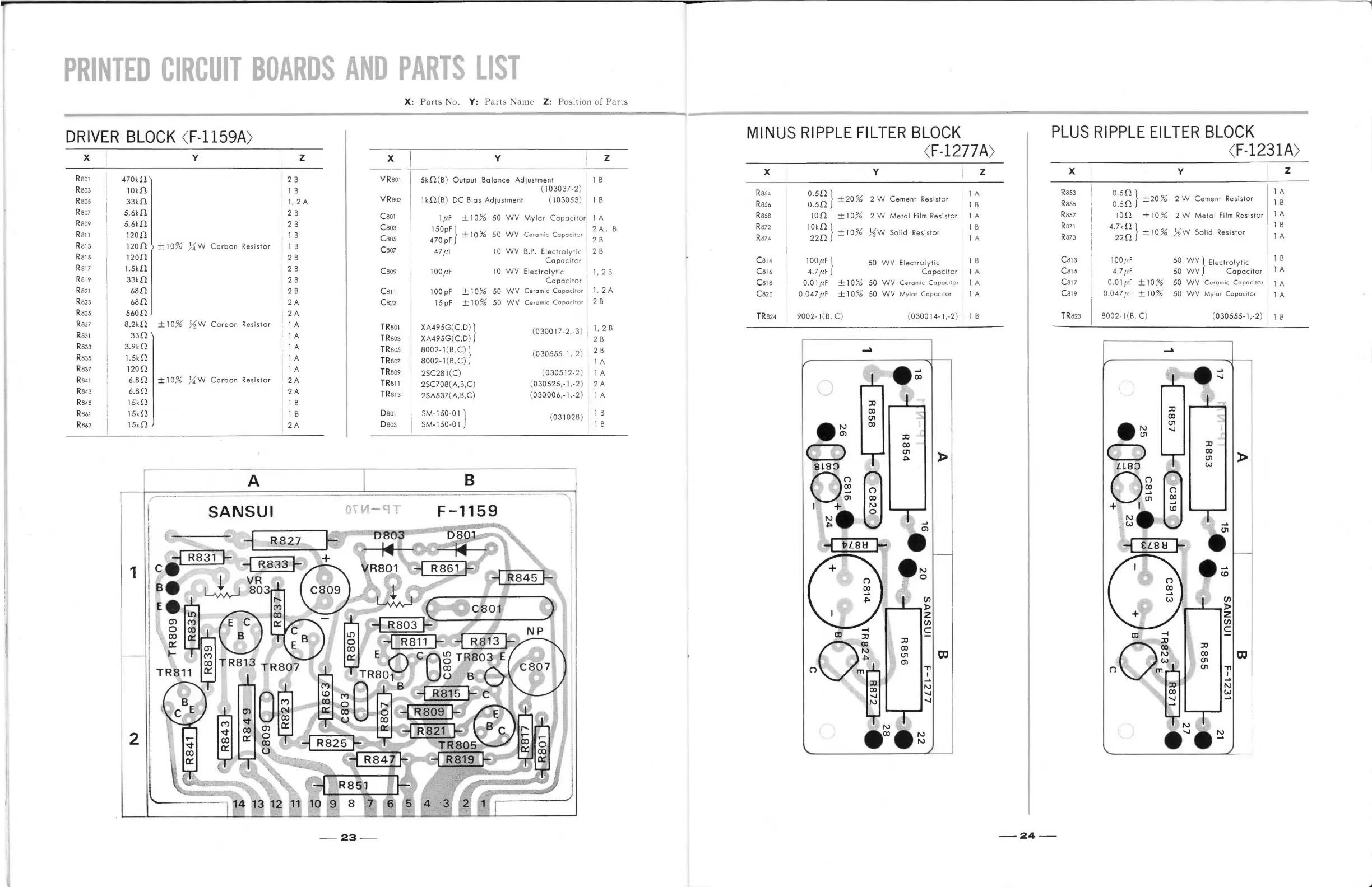 Sansui AU-666 - Printed Circuit Board Parts: Driver Block; Printed Circuit Board Parts: Filter Blocks