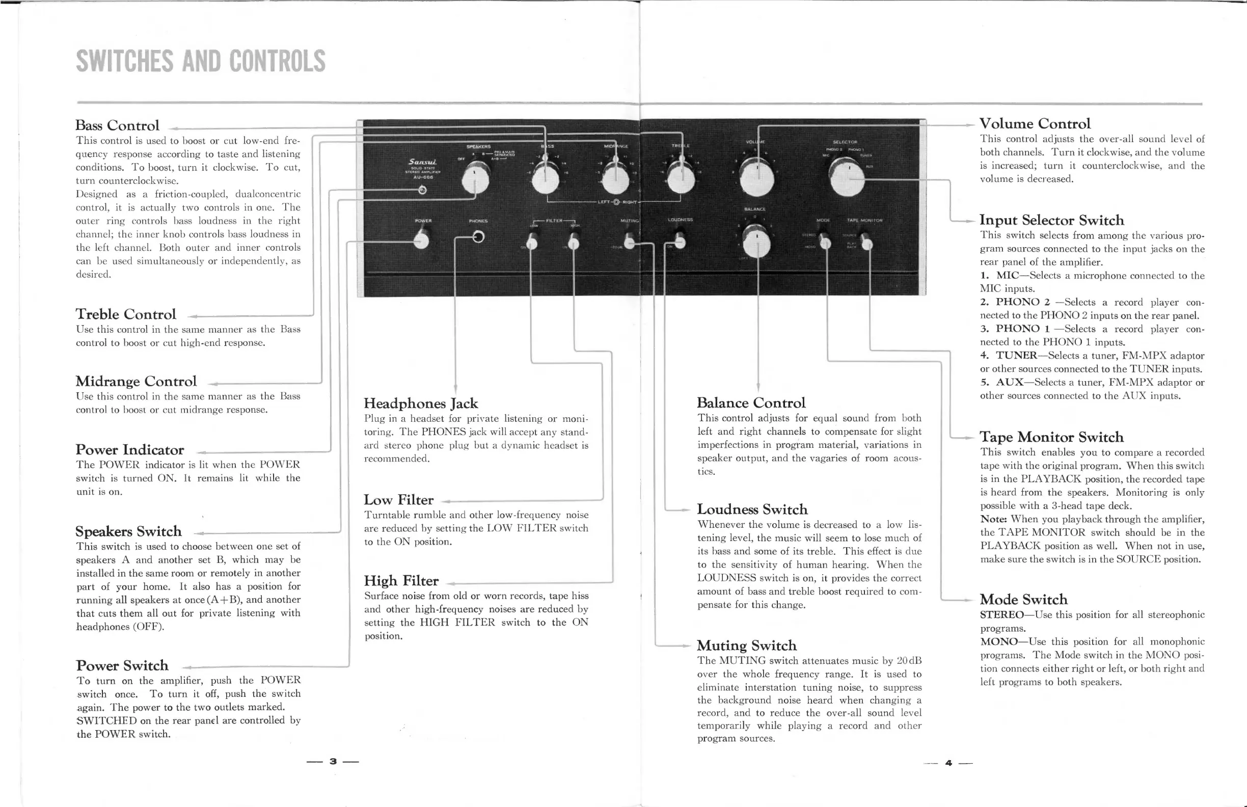 Sansui AU-666 - Front Panel Controls Overview; Tone Control Functions; Volume, Balance, and Loudness; Input Selector and Mode Settings
