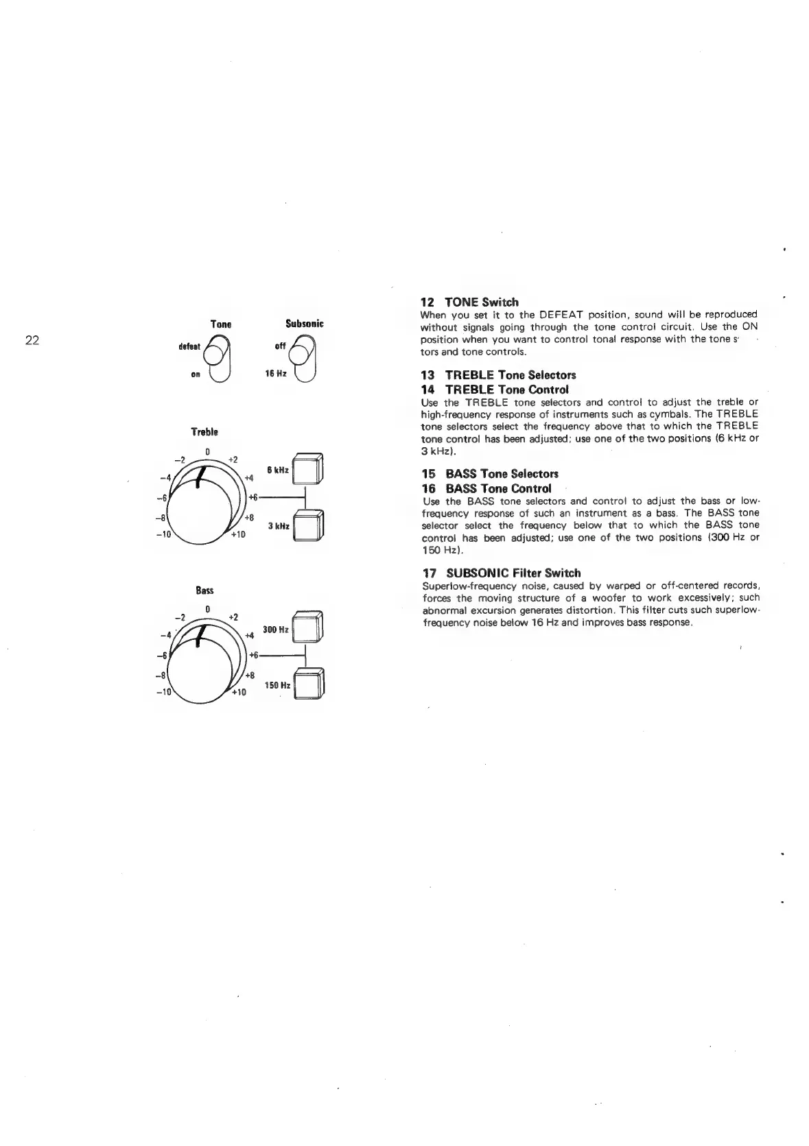 Sansui AU-719 - Tone and Filter Controls; Tone, Treble, Bass, and Subsonic Controls