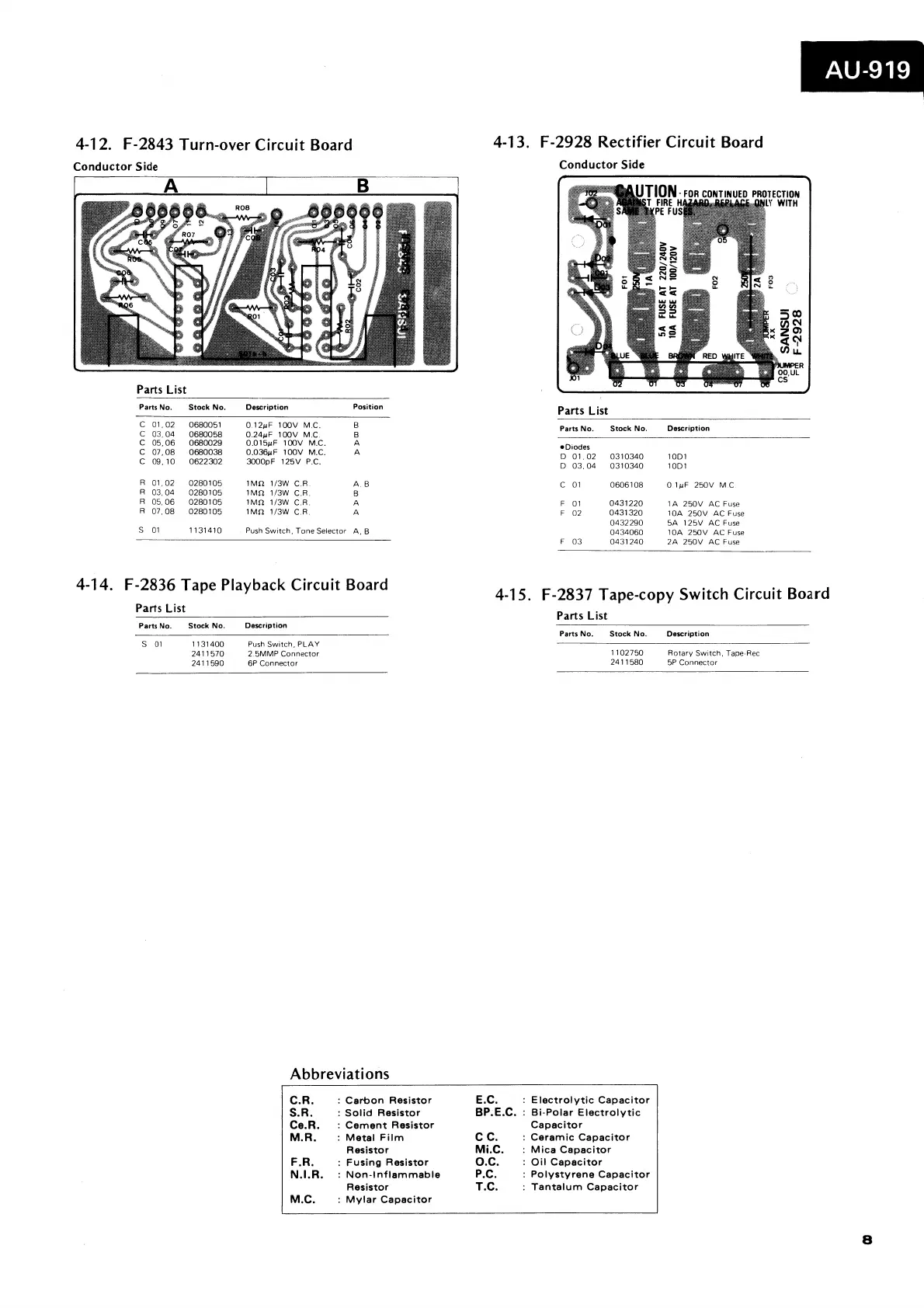 Sansui AU-919 - F-2843 Turn-Over Circuit Board; F-2928 Rectifier Circuit Board