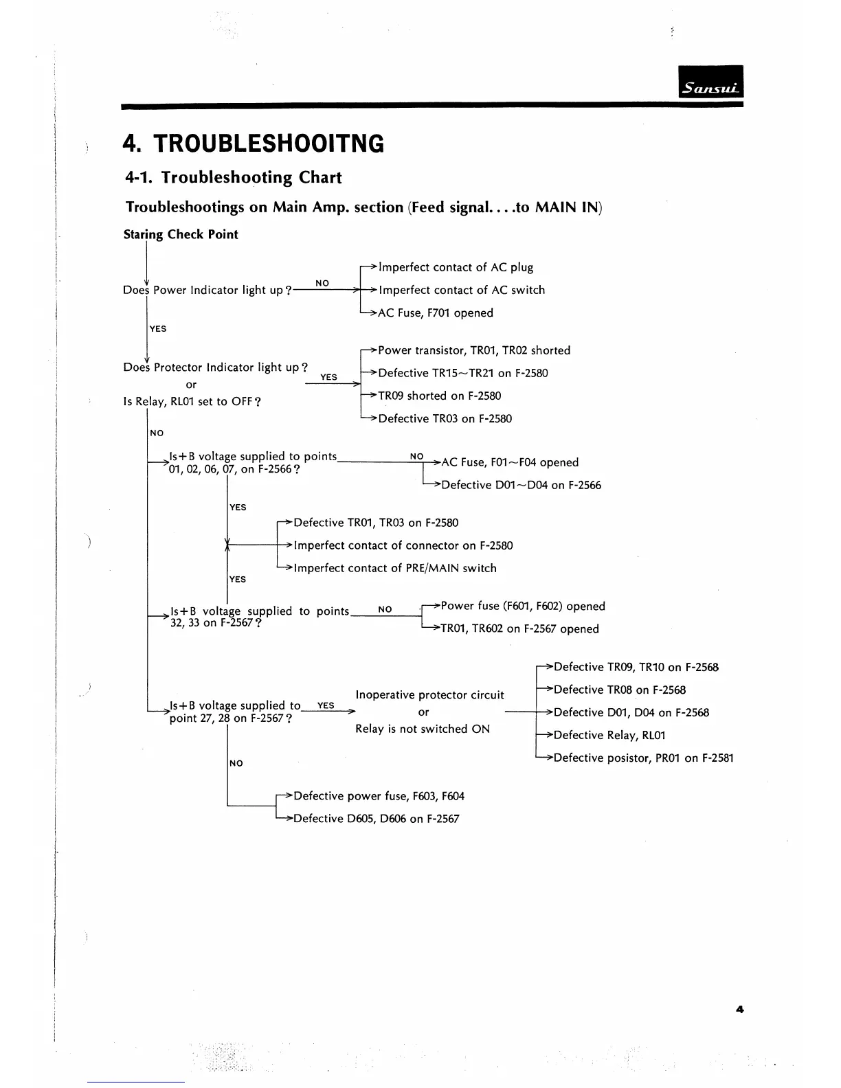 Sansui AU-9900 - Troubleshooting; Troubleshooting Chart