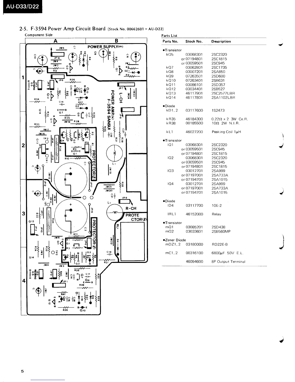 Sansui AU-D33 - F-3594 Power Amp Circuit Board Parts