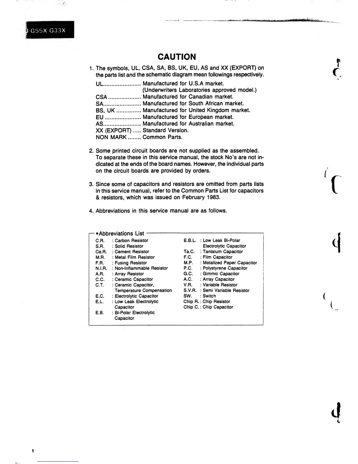 Sansui AU-G55X - Manual Interpretation Guide; Product Markings and Symbols; Printed Circuit Board Notes; Parts List Referencing