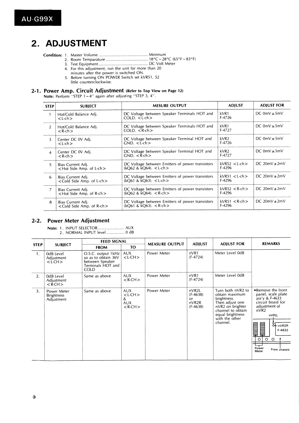 Sansui AU-G99X - Adjustment Procedures; Power Amplifier Circuit Adjustment; Power Meter Adjustment