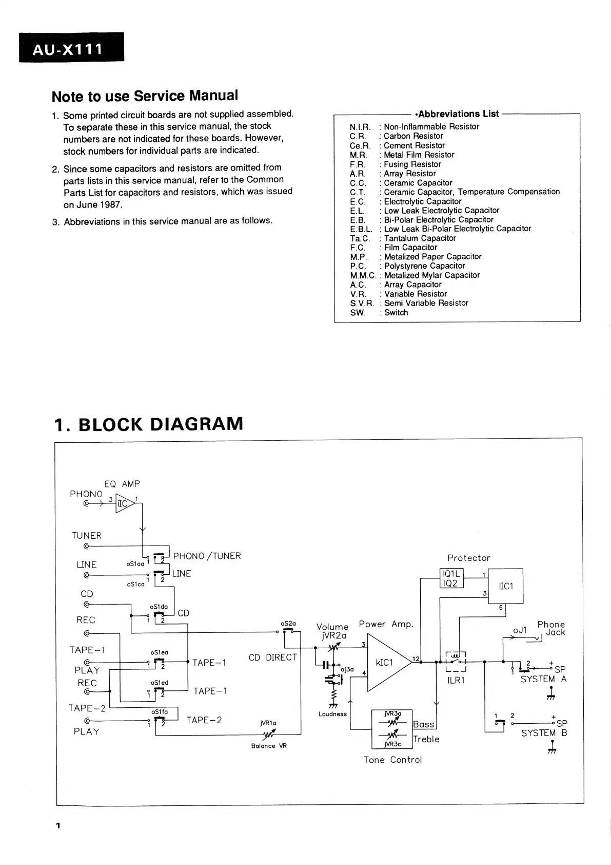 Sansui AU-X111 - Block Diagram